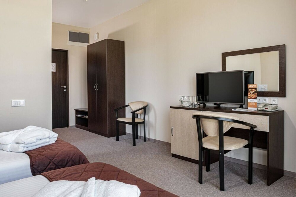 Номер оснащён двуспальной либо двумя односпальными кроватями.