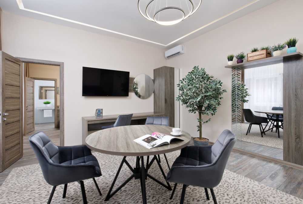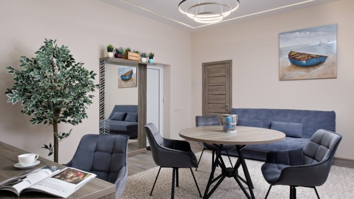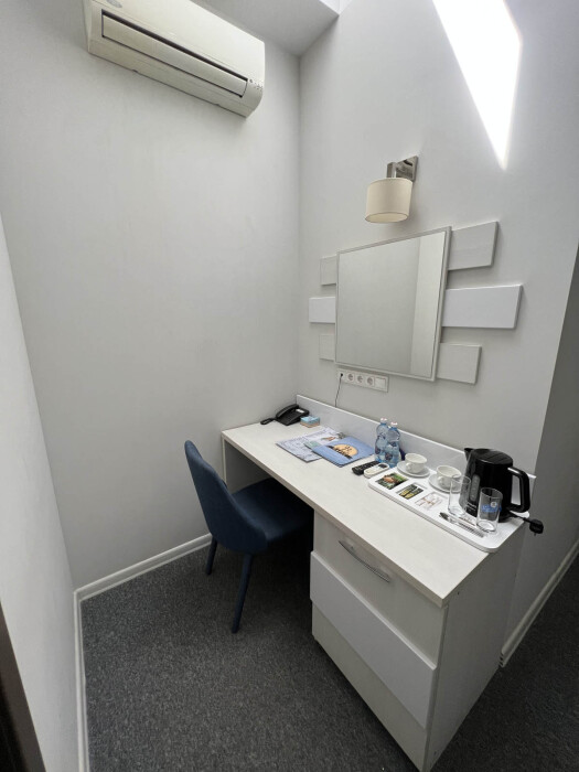 К услугам гостей 14 современных номеров. Каждый номер выполнен в стиле минимализма, в сдержанных пастельных тонах. К удобству гостей мини-бары, сейфы, телефоны, кондиционеры, чайные принадлежности, качественный текстиль, гигиенические наборы и широкая инфраструктура отеля.