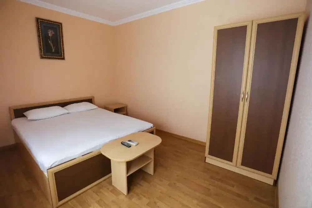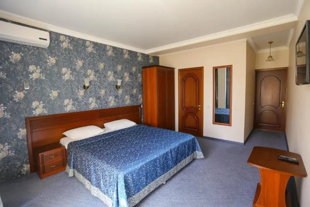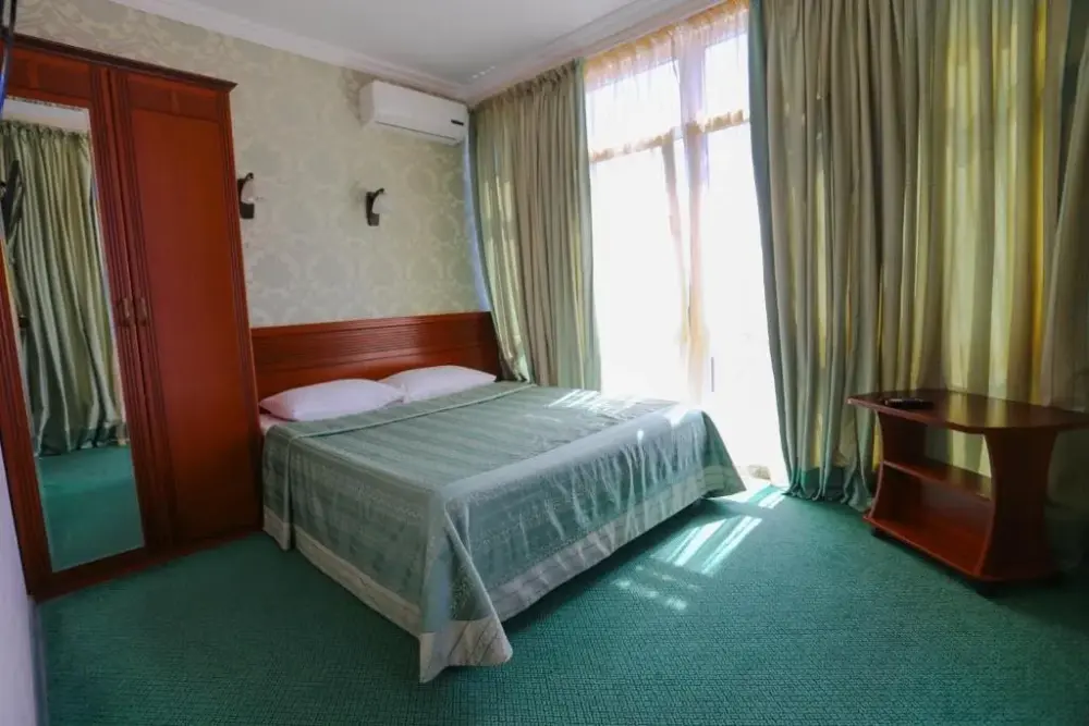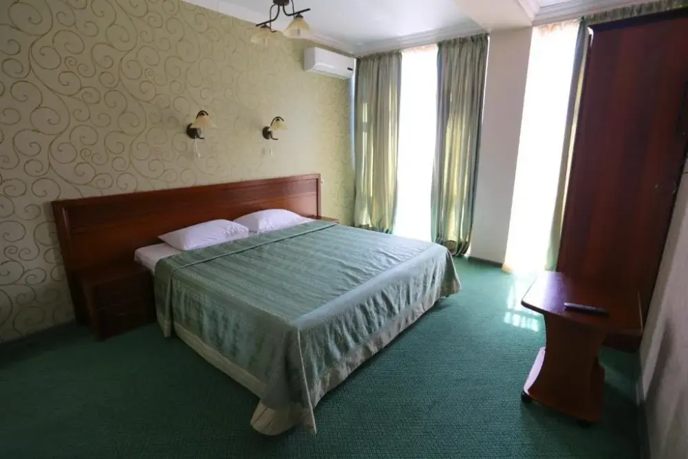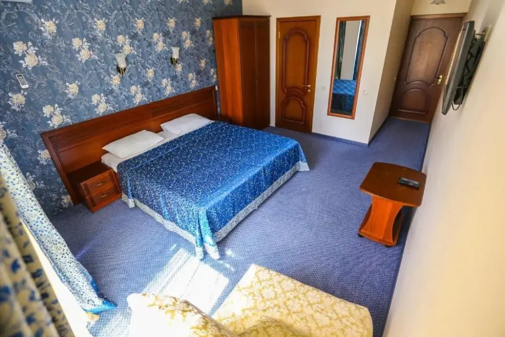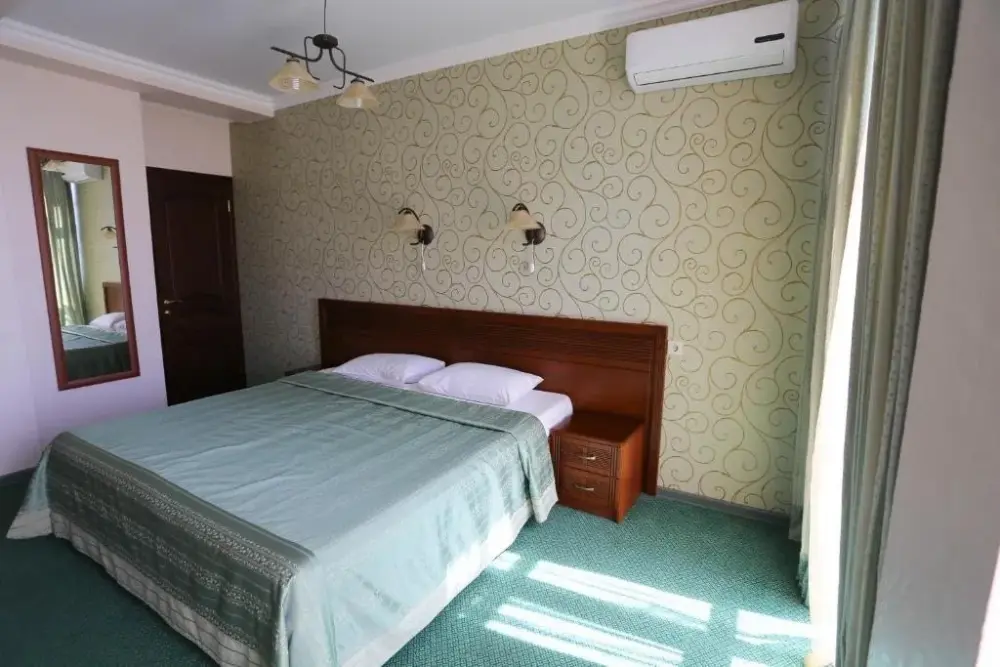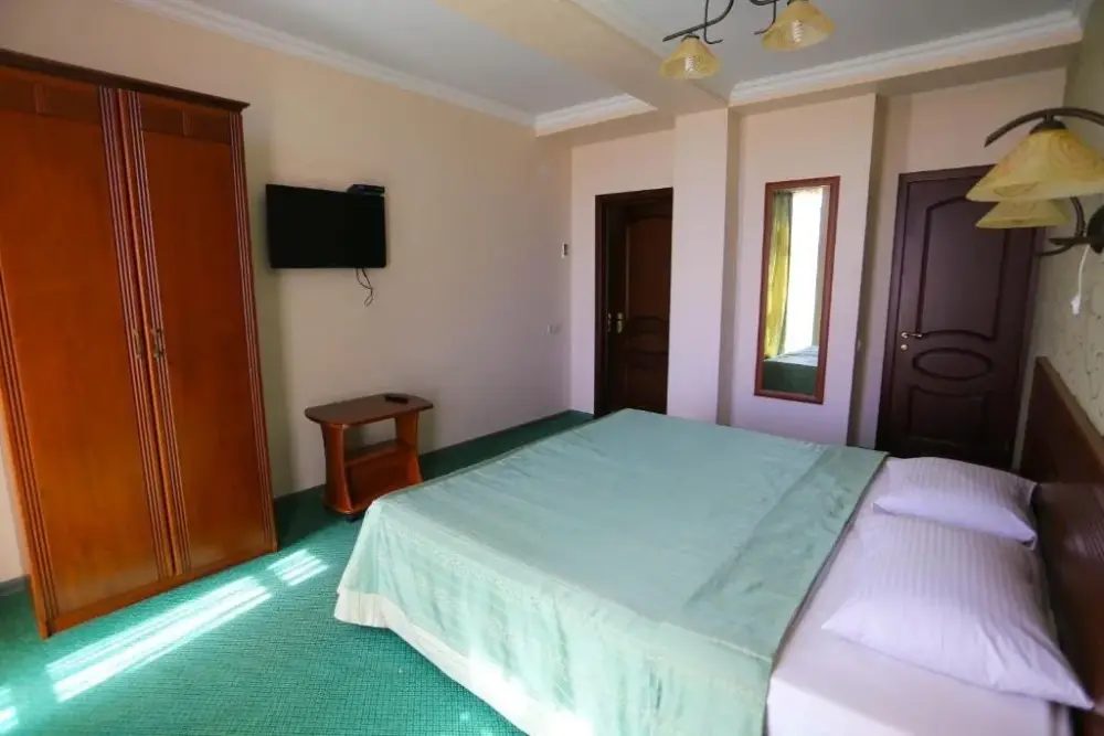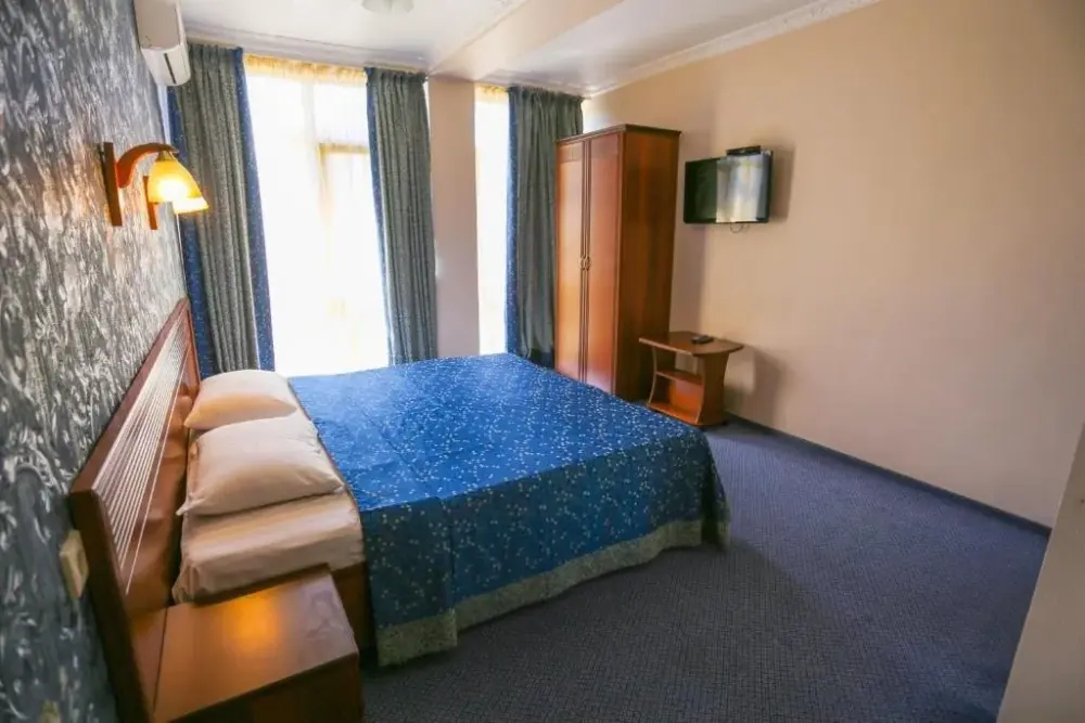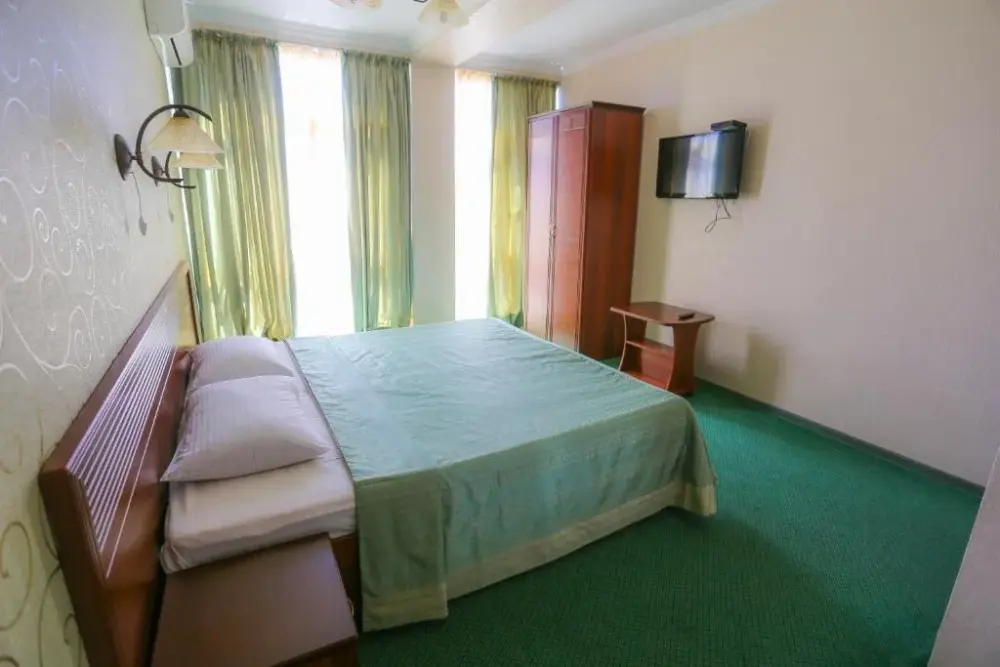В номере: двухспальная кровать, телевизор и спутниковое ТВ, душ, туалет, кондиционер, шкаф. Дополнительное место - евро раскладушка.