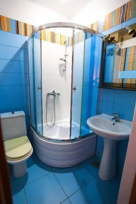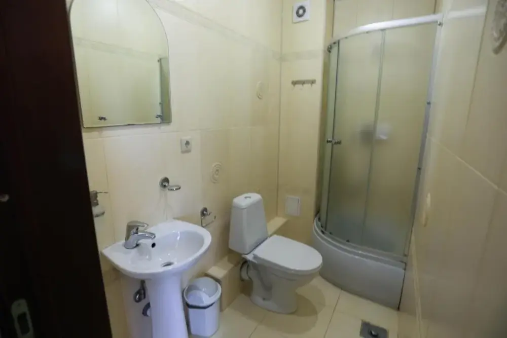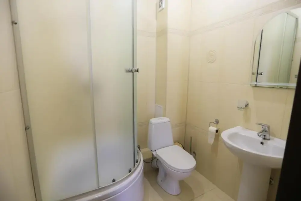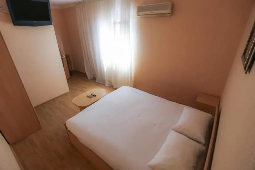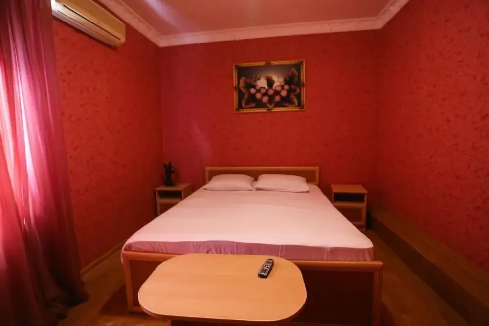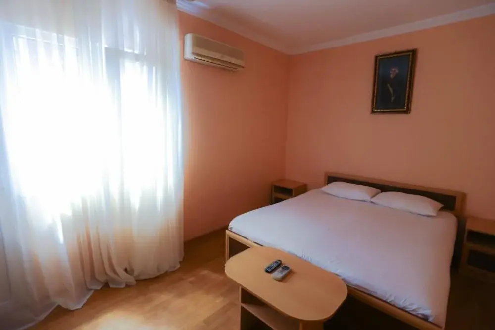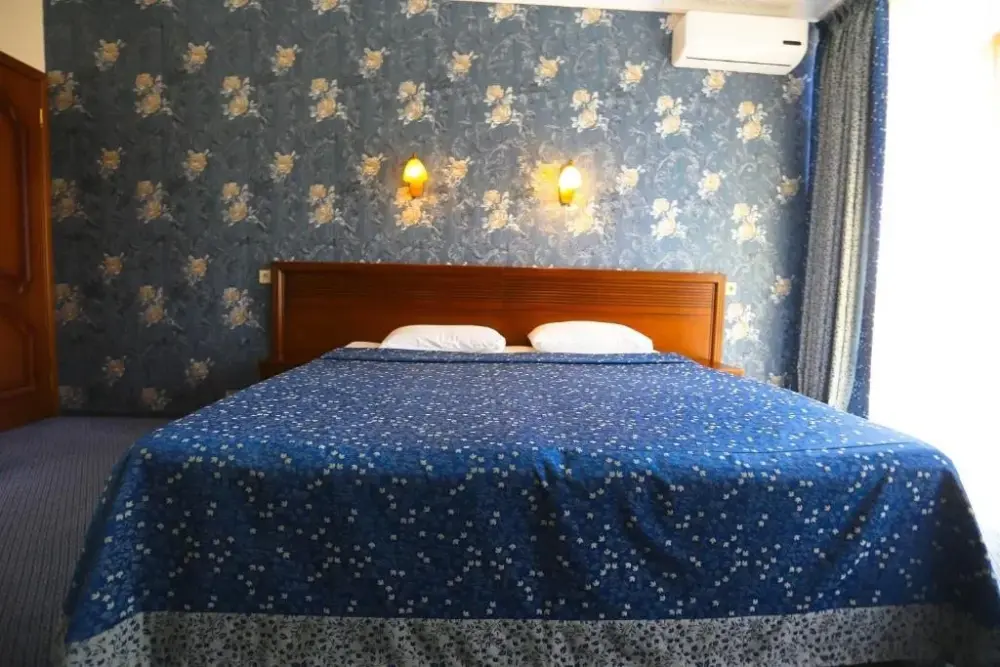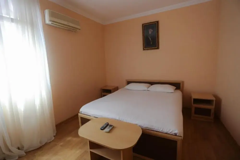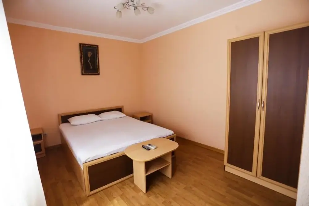 В номере: двухспальная кровать, телевизор и спутниковое ТВ, душ, туалет, кондиционер, шкаф. Дополнительное место - евро раскладушка.