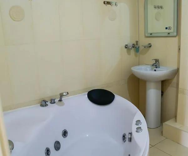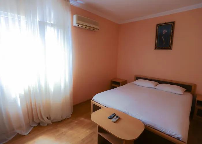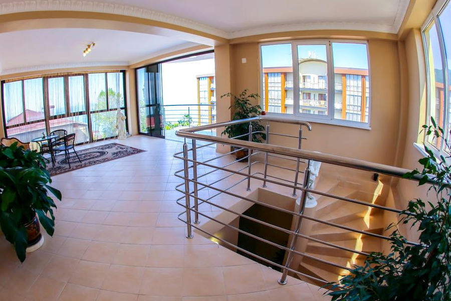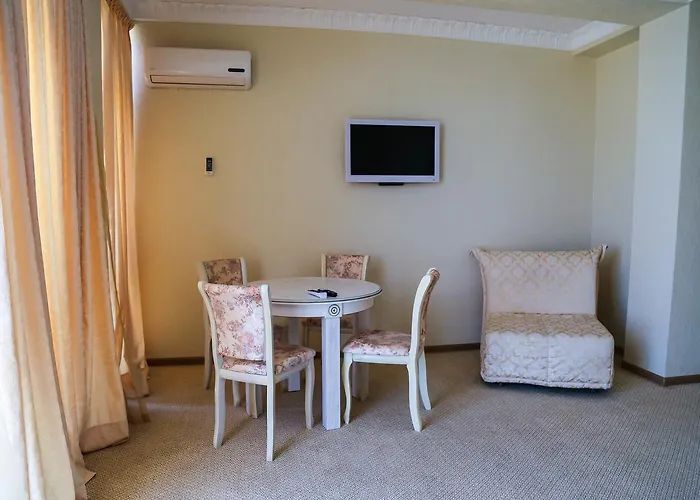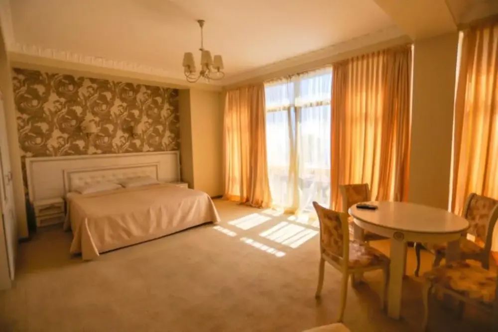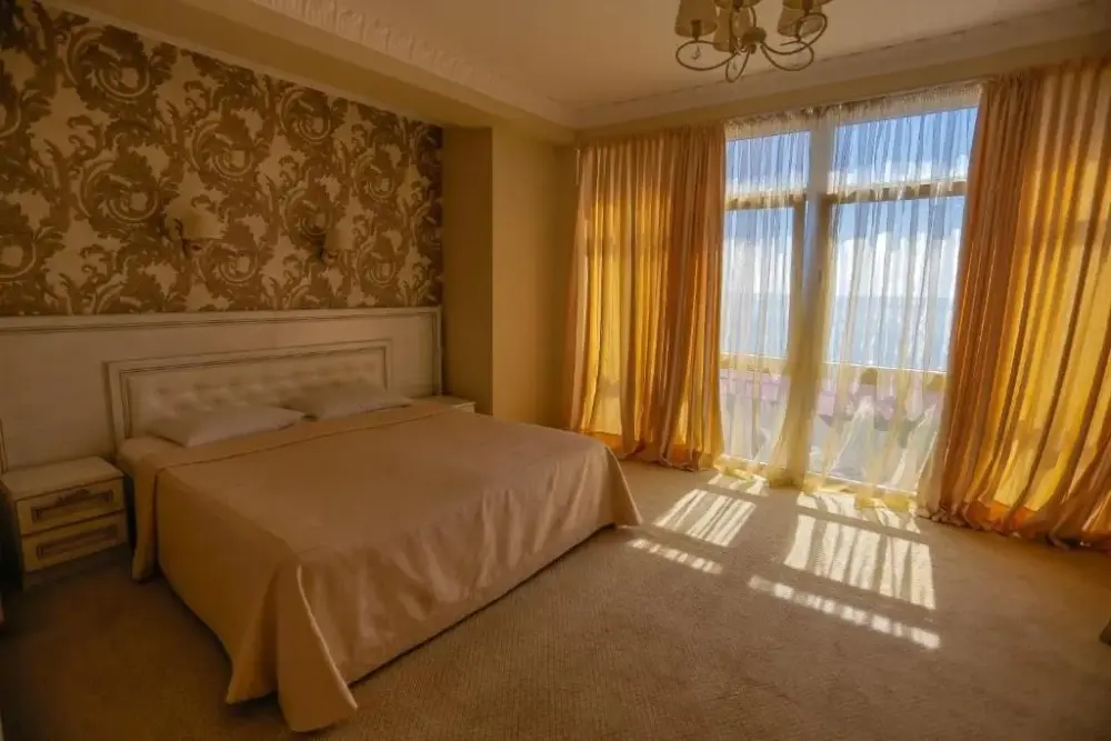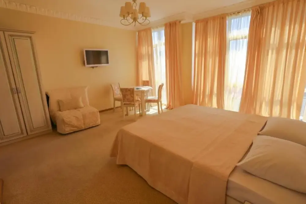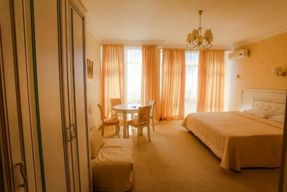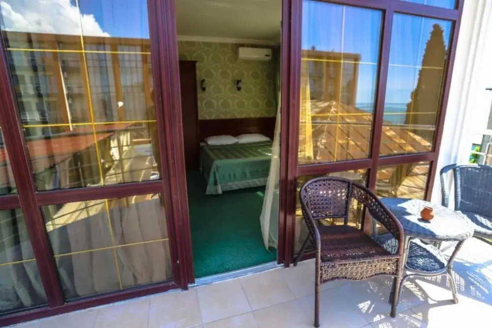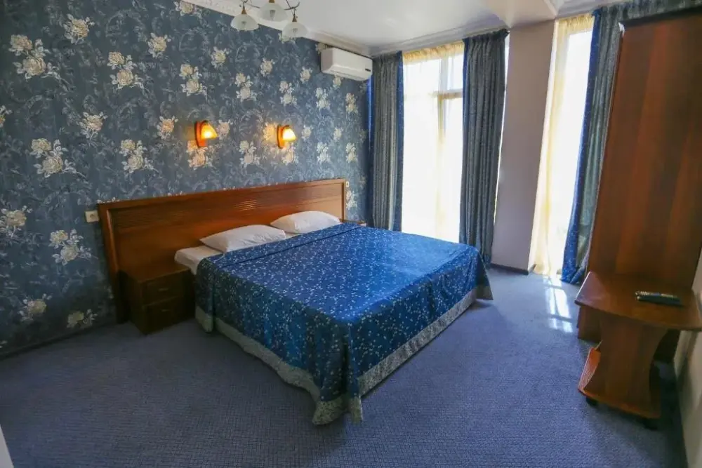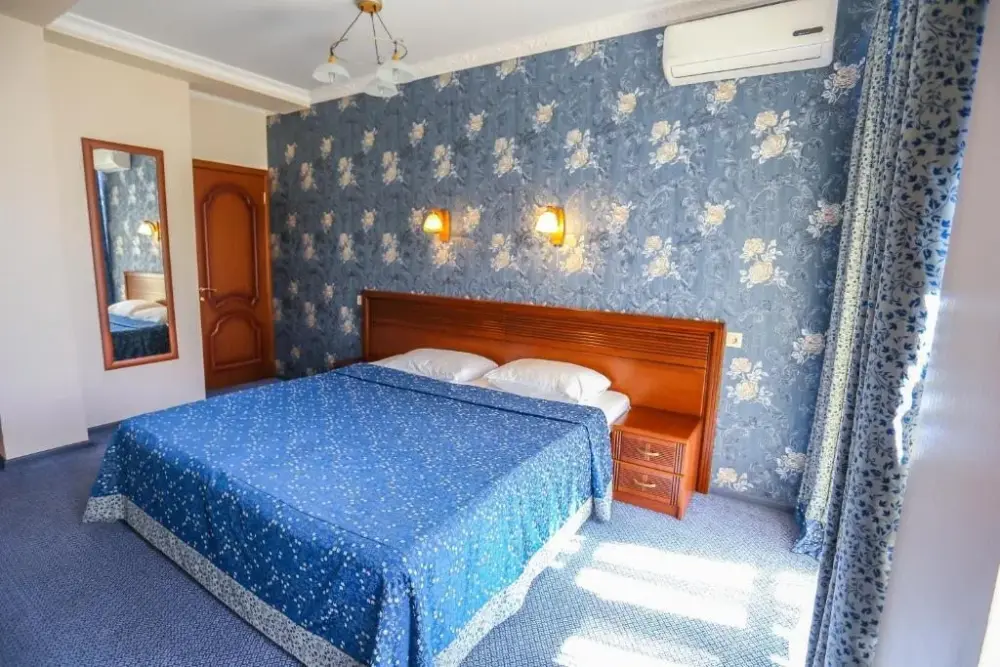Четырехэтажный корпус отеля (без лифта) находится в 50 метрах от морского побережья. Небольшой жилой фонд предлагает отдыхающим двухместные номера категории Стандарт, Комфорт и Люкс. В номерах классический интерьер, выдержанный как в теплой пастельной гамме, так и в холодных синих или бирюзовых оттенках. Все номера оснащены кондиционером с санузлом с душем. В Люксах имеется джакузи. Отдыхающим доступен беспроводной интернет, на ресепшене можно заказать экскурсии по главным туристическим местам республики.