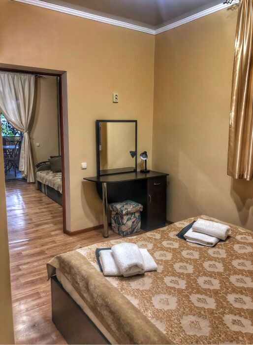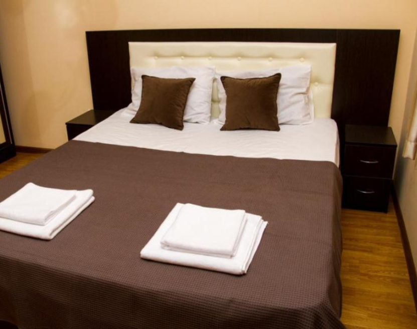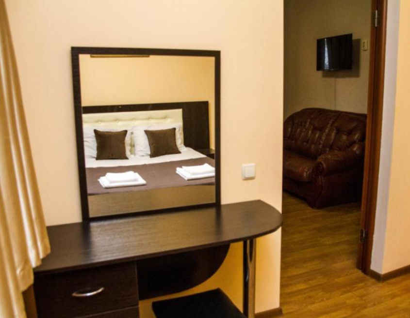Мини-отель располагает комфортабельными номерами категории Стандарт и Семейный, расположенными в 4-этажном корпусном здании. Каждый номер отеля оснащён телевизором, удобной 2-спальной кроватью, тумбами, столиком, гардеробом, душевой и санузлом, системой кондиционирования «зима-лето», рассчитанными на работу в любое время года.