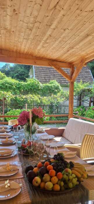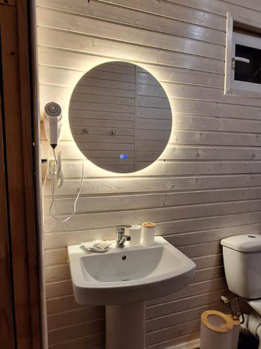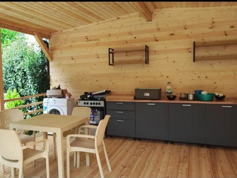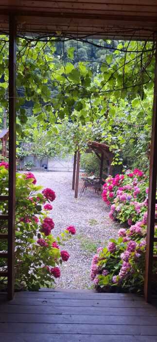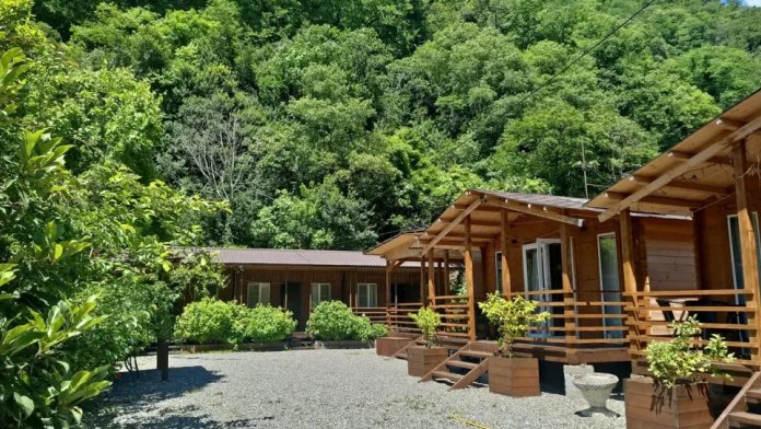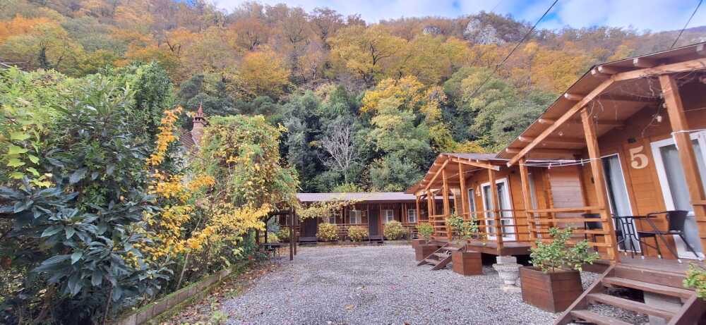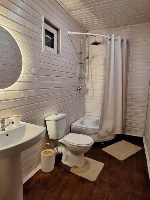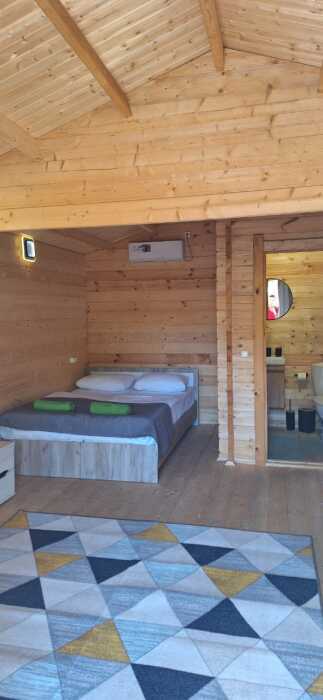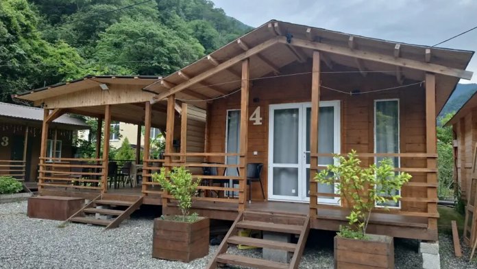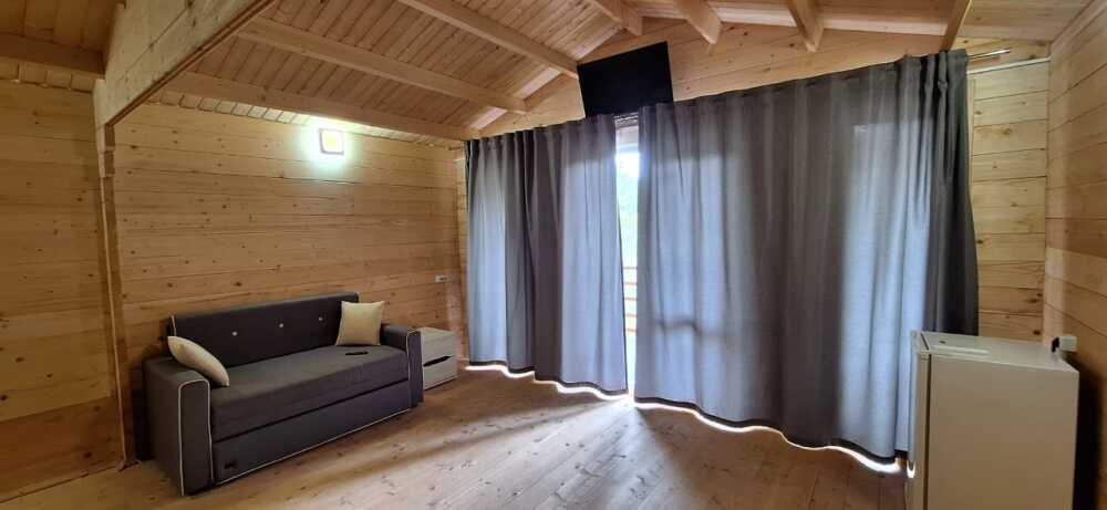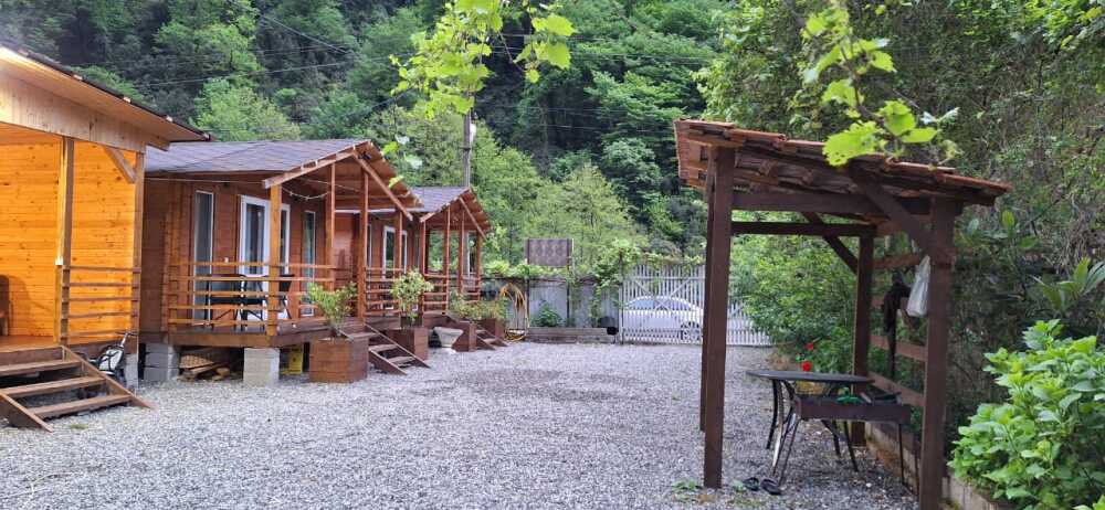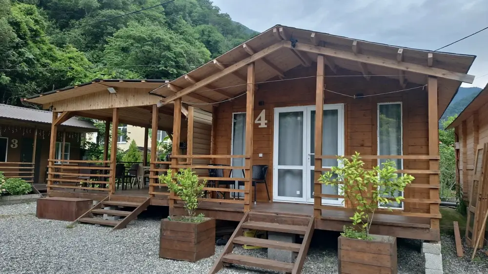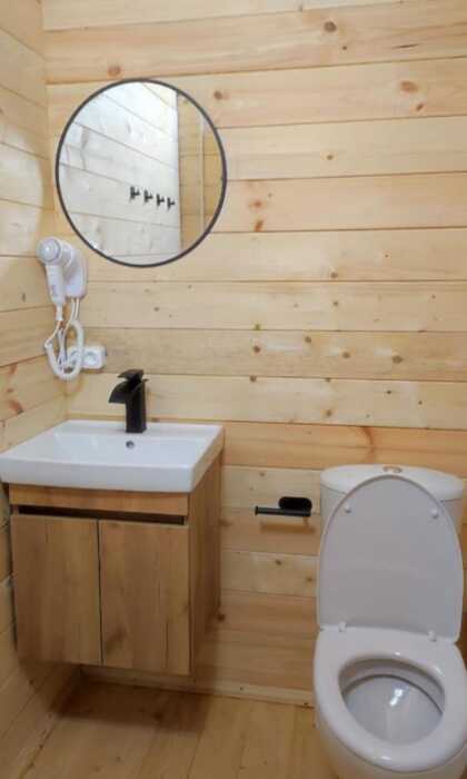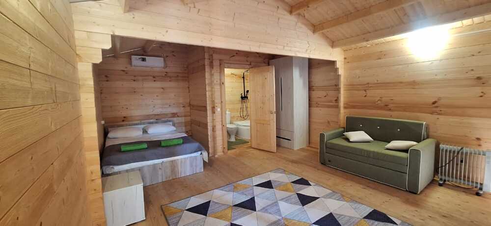 Сдаются деревянные коттеджи со всеми необходимыми условиями, на территории стоят 5 коттеджей и одна общая кухня, есть зона барбекю. В номерах: одна двуспальная кровать, односпальная, есть детские кроватки, диваны и доп места. ТВ, холодильник, кондиционер, фен, чайная станция. Горячая, холодная вода. Есть домики, где установлены двуспальная и односпальная кровати, двуспальная кровать и диван.