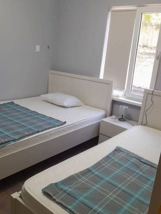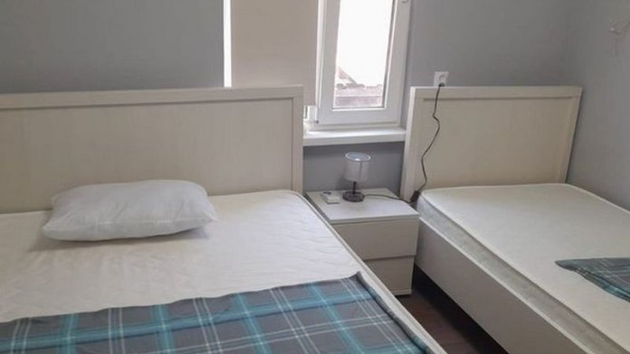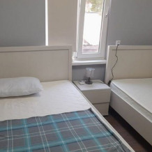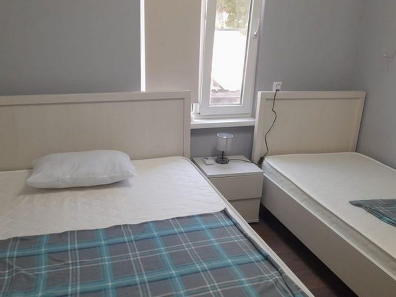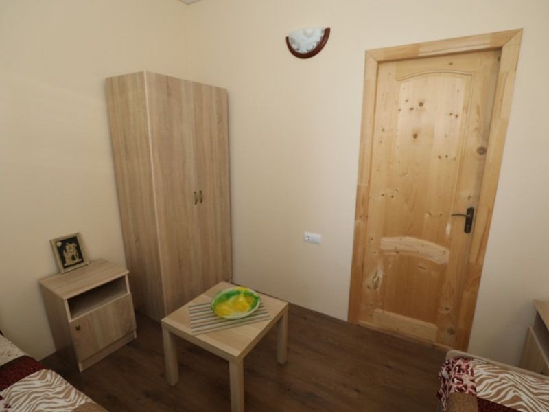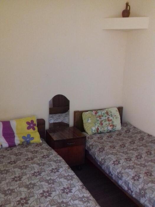 Две односпальные или одна двуспальная кровать. Санузел общий рядом с номером.