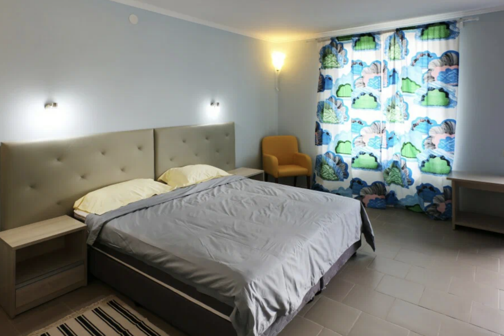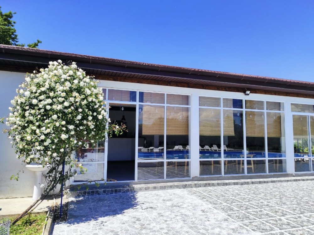 Корпус отеля имеет два этажа. Количество номеров в отеле 20. Большая квадратура номеров позволяет удобно расположиться с семьей из 4 человек. Из окон открывается вид либо на бассейн, либо на чудесные горы Абхазии. Вечерами можно любоваться видами моря на веранде отеля.
