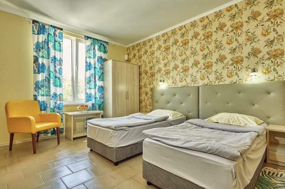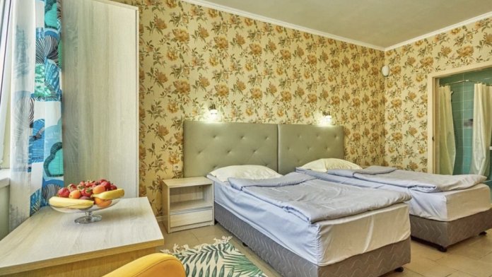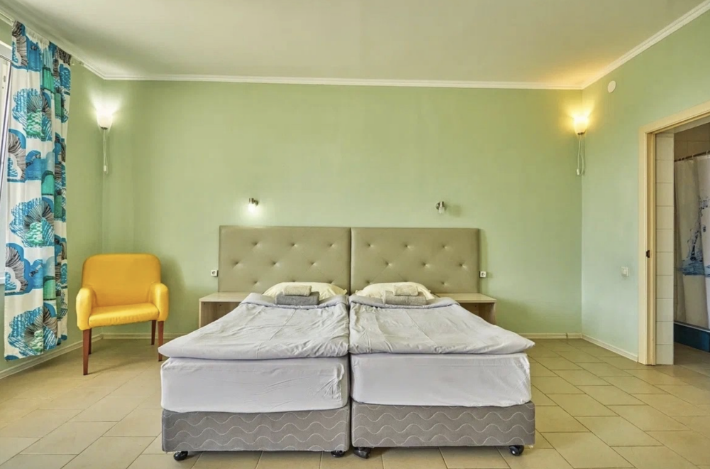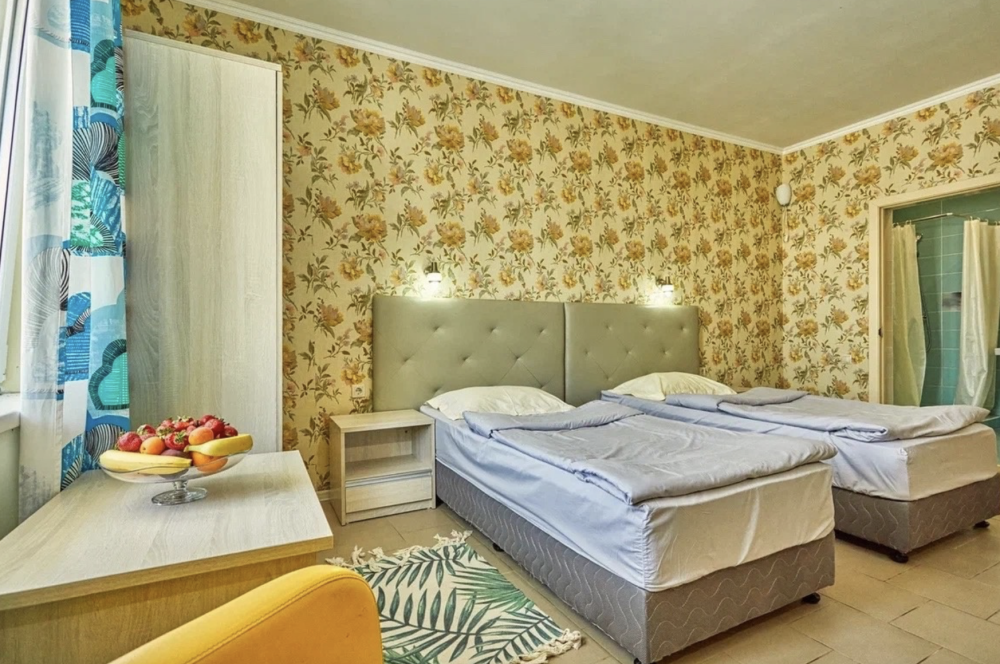 В номере установлена двуспальная кровать или две односпальные кровати (на выбор гостя).