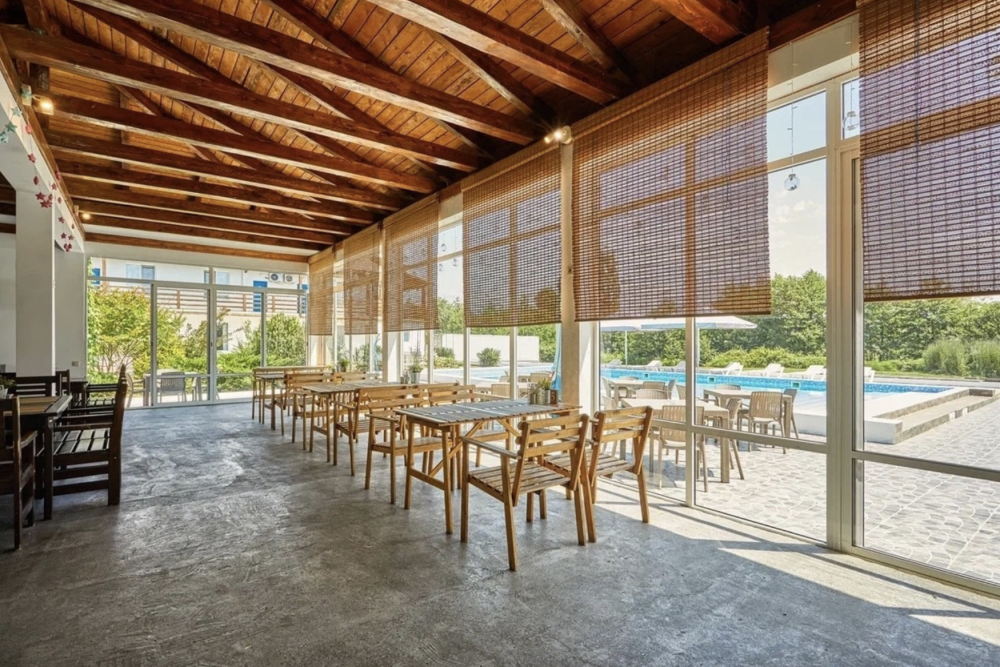 Одно из преимуществ отеля - это служба питания. В небольшом кафе с летней верандой Вы можете попробовать вкусные домашние комплексные обеды. А вечерами, можно поужинать национальными блюдами и блюдами европейской кухни. Интернациональная команда поваров готовит для Вас на любой вкус. Также есть детское меню в игривом исполнении.