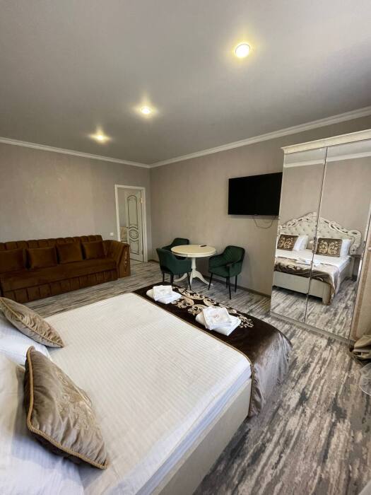 Отель предлагает Вам провести незабываемый отдых в Кисловодске. Кристально чистый воздух гор, мягкий климат и солнечная погода одинаково полезны как для детей, так и для взрослых. Чтобы Ваше пребывание прошло максимально комфортно и уютно, мы предлагаем Вам номера с евроремонтом, новой мебелью, бесплатным WI-FI и первоклассным обслуживанием. Охраняемая парковка перед отелем.