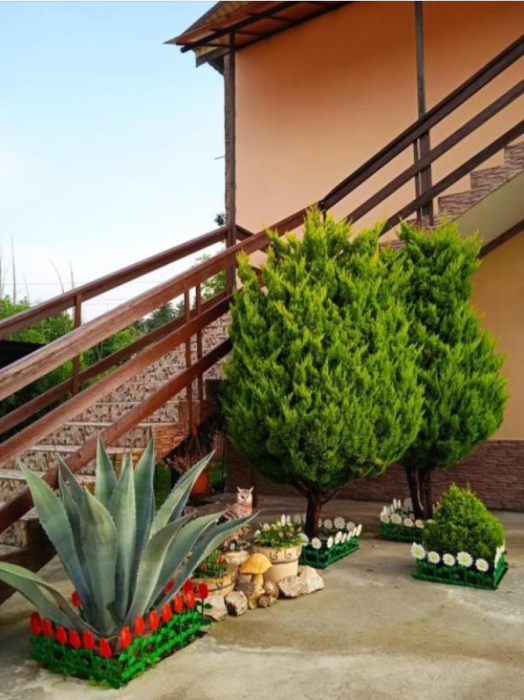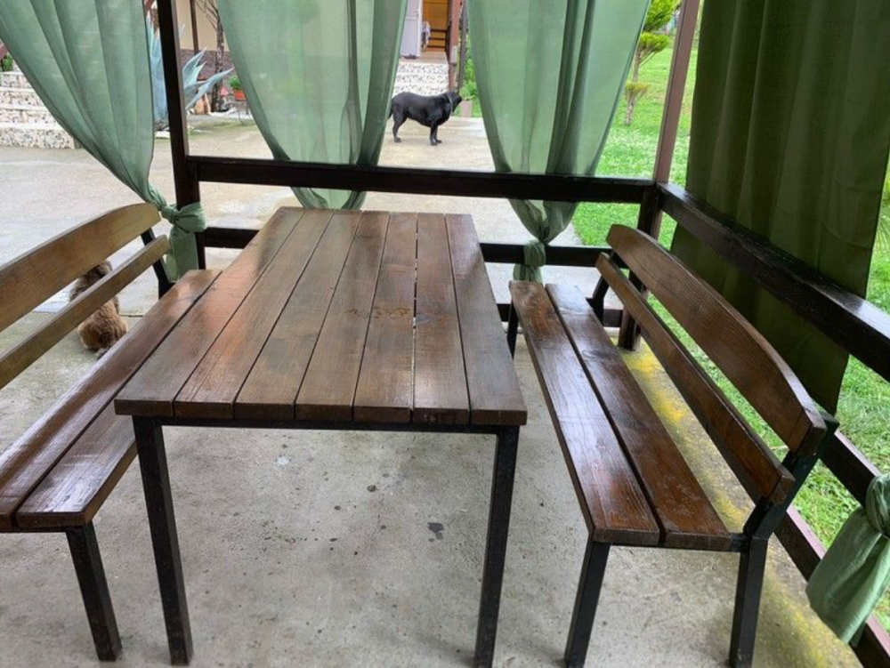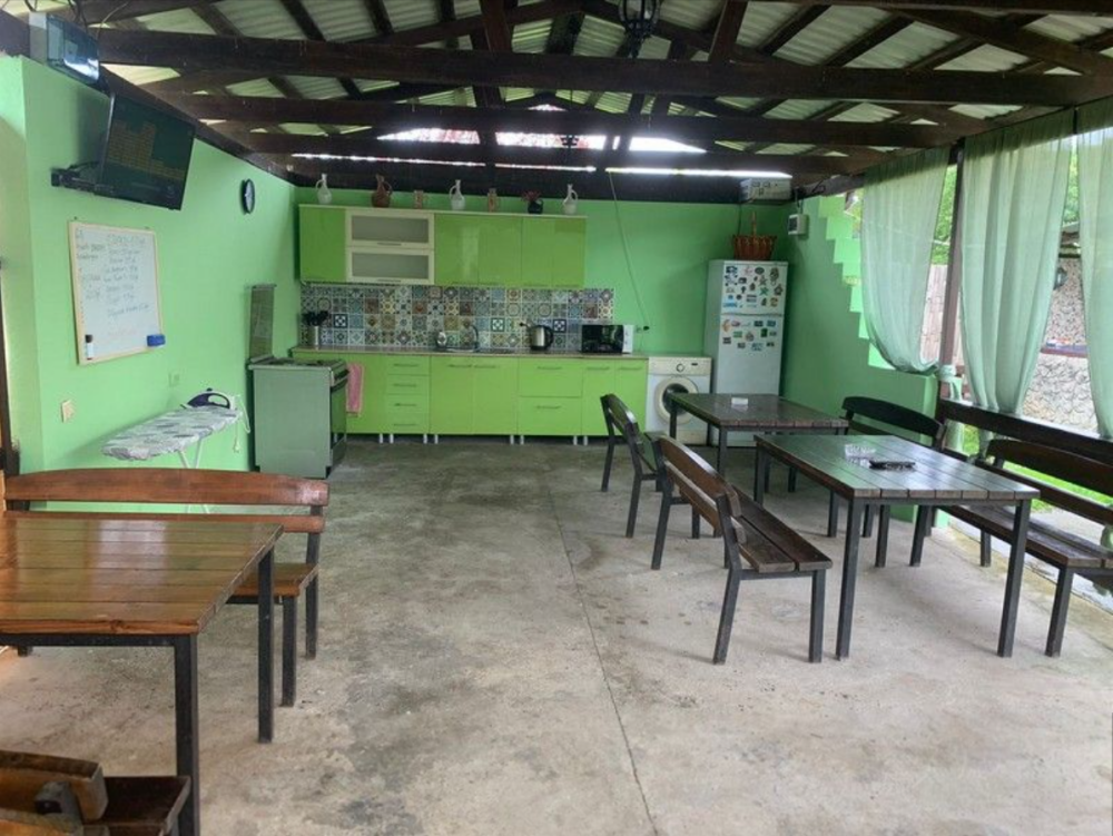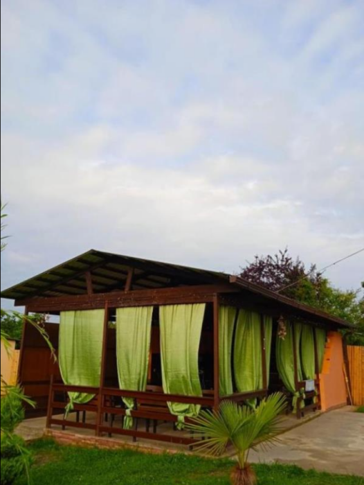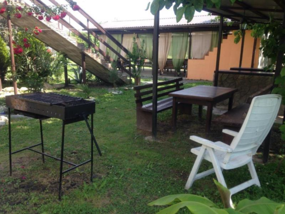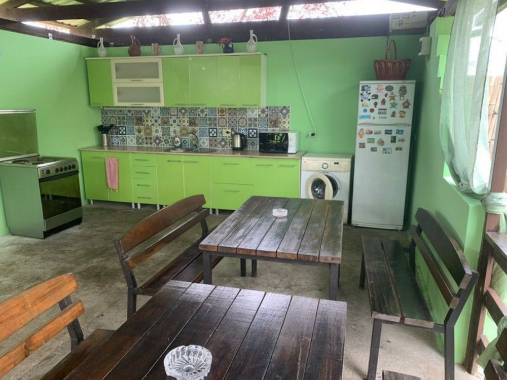 Гостевой дом расположен на большой территории. Есть большая кухня. На кухне 2 холодильника, микроволновая печь, стиральная машина, гладильная доска-утюг, вся бытовая посуда, плита. Есть зона барбекю, мангал. Парковка возле гостевого дома бесплатно. Есть Wi-Fi.