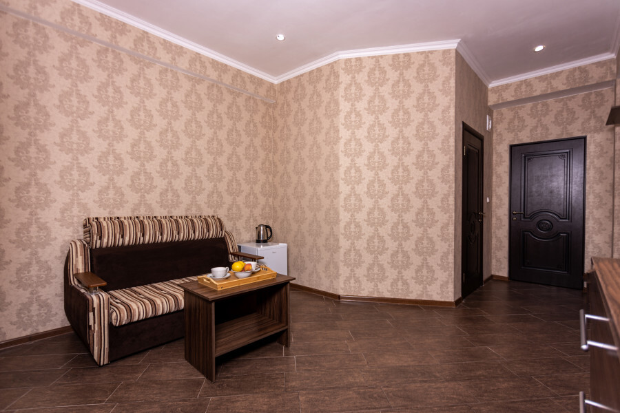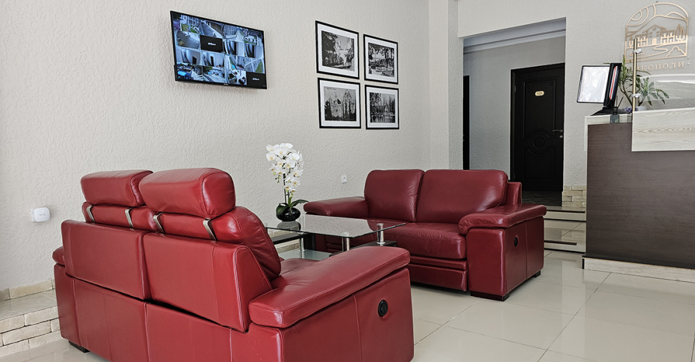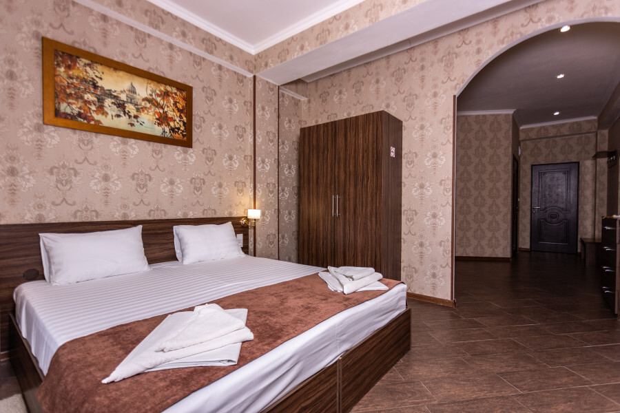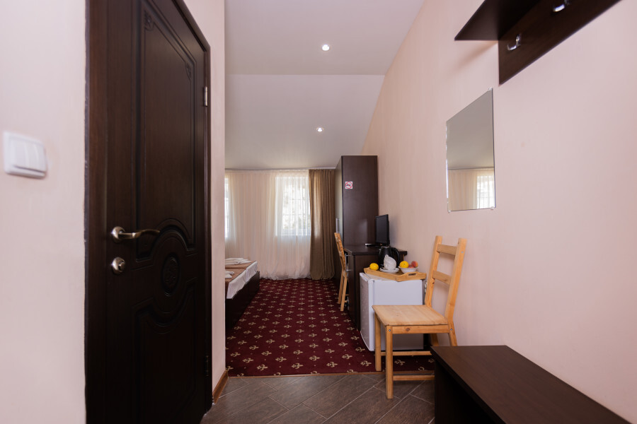 Современное 4-х этажное здание, территория скрыта от посторонних глаз за высоким забором. Круглосуточная охрана и установленные камеры наблюдения обеспечат полную безопасность постояльцев. Любители путешествовать на автомобилях могут оставить машину на охраняемой автостоянке.