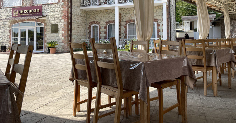Кафе и бар, расположенные на территории, работают параллельно. Здесь каждый посетитель может отведать блюда абхазской кухни. Разнообразие салатов, блюд из мяса и рыбы поразит любого гурмана. Особо оценить колорит местной кухни позволят ароматные мясо и рыба, запеченные на мангале. Бар побалует своих посетителей разнообразием сладостей, мороженого, соков и прохладительных напитков. Для любителей напитков покрепче представлен широкий ассортимент спиртных напитков.