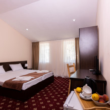 Гостям, для проживания, предлагаются уютные номера разных категорий, со всем необходимым для комфортного отдыха.