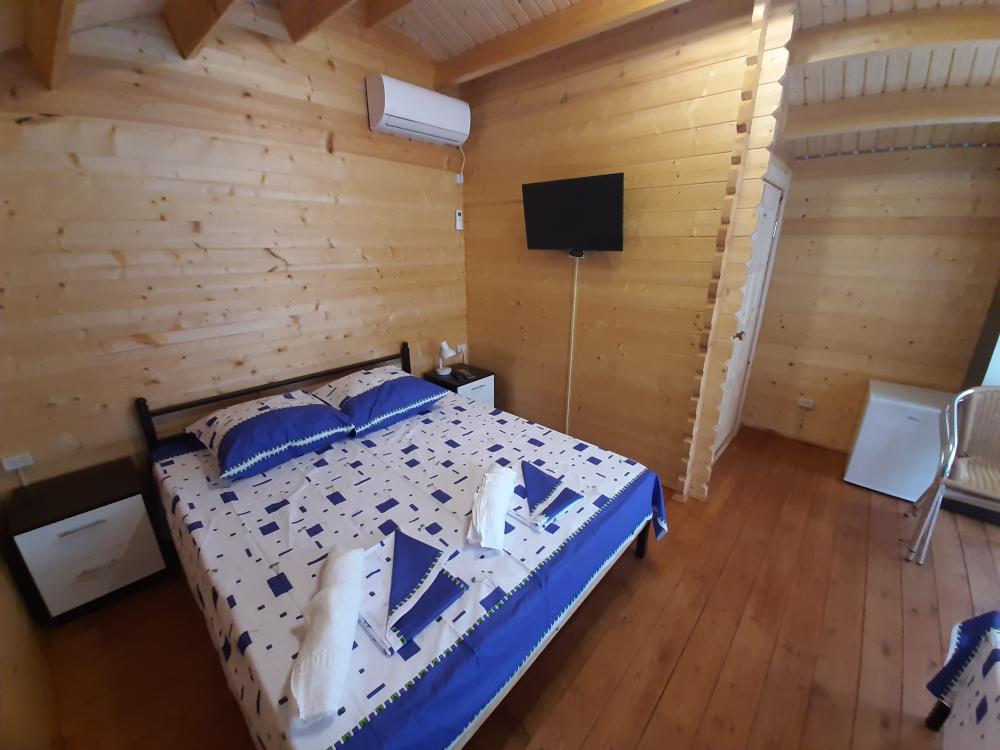 Для проживания предлагаем 10 коттеджей, вместимостью до 4-х человек. В каждом из них индивидуальный санузел, односпальные или двуспальная кровати, шкаф, прикроватные тумбочки, туалетный столик, стол, вешалка, обеденная зона, а также кондиционер, телевизор, спутниковое ТВ, холодильник, посуда, интернет, терраса, на которой можно удобно расположиться у столика, в удобных креслах. Часть коттеджей с видом на море.