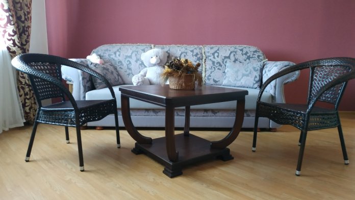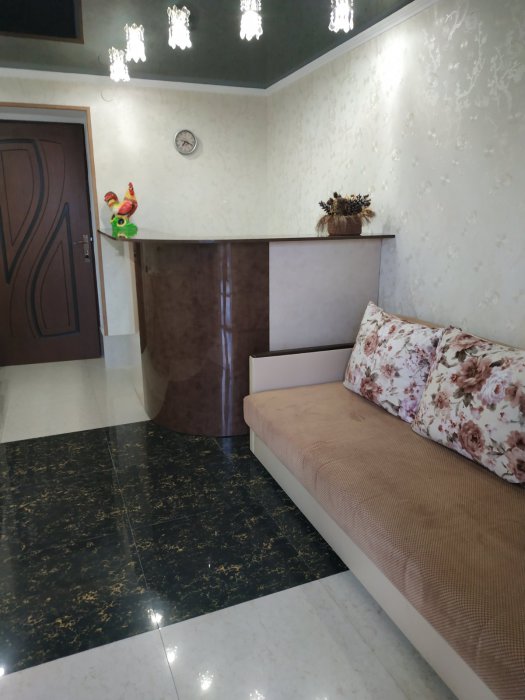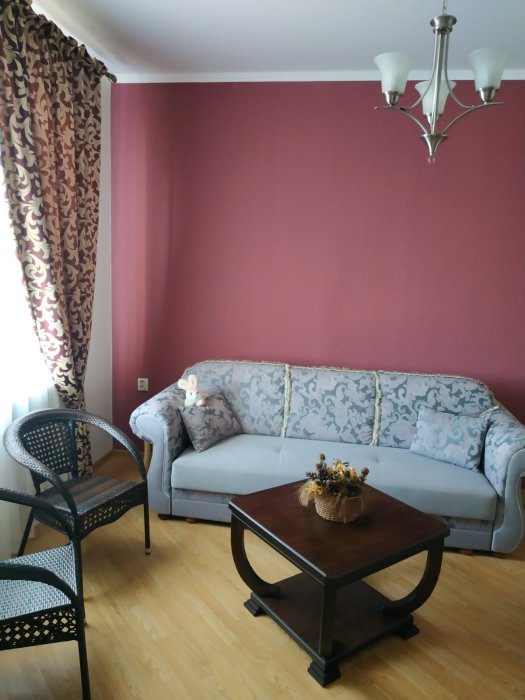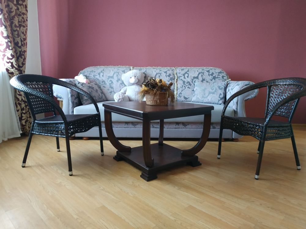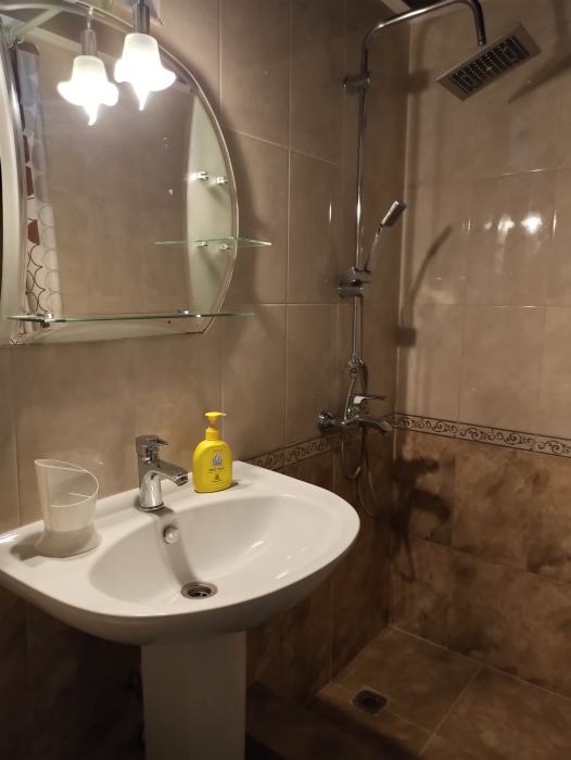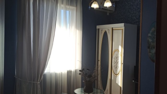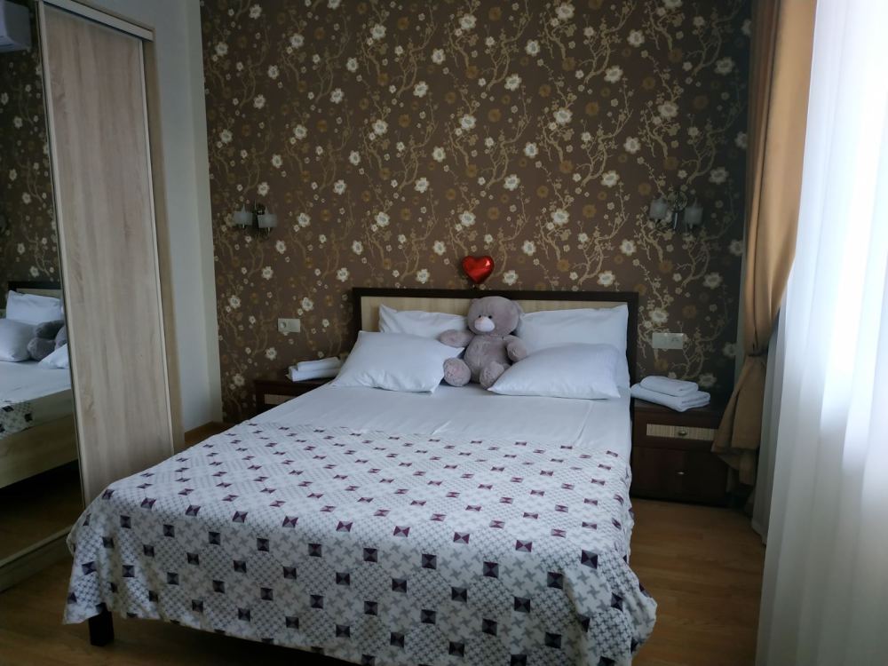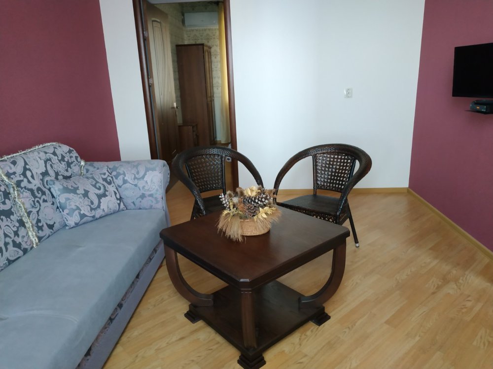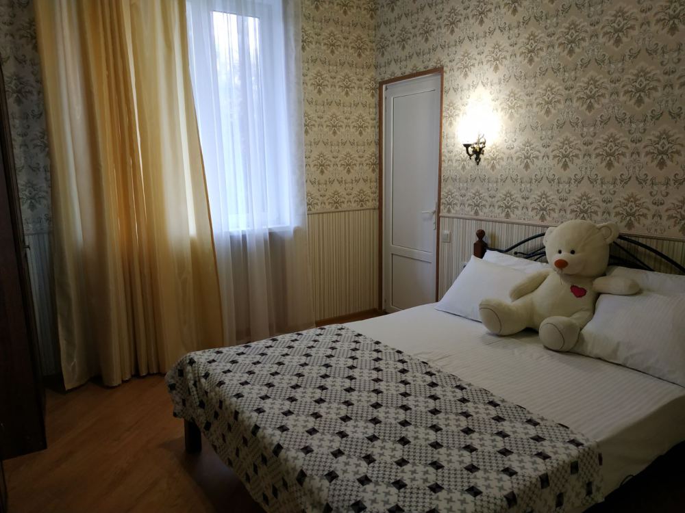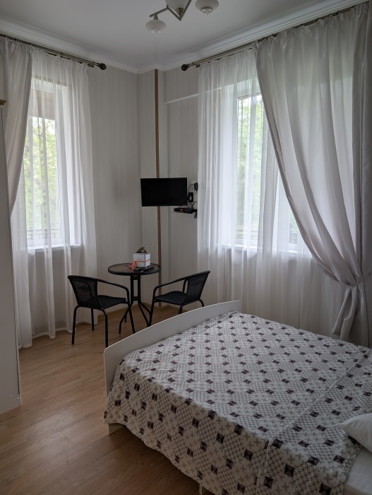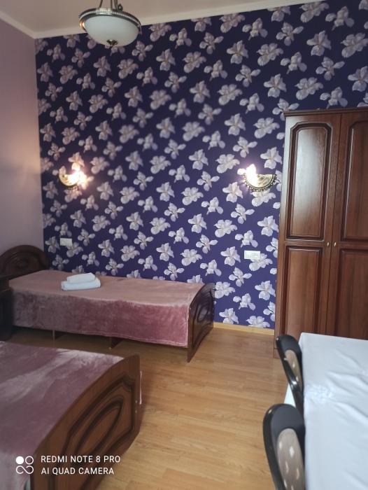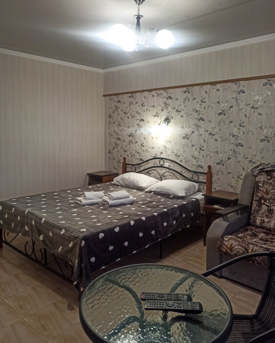 В номере: две односпальные кровати, диван-кровать, шкаф, прикроватные тумбочки, вешалка, зеркало, столик. Удобства: сплит-система, телевизор, спутниковое ТВ, интернет, фен.