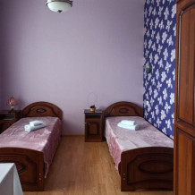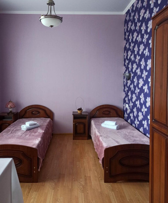 Двухместный номер с двумя односпальными кроватями. В номере: тумбы, зеркало, шкаф, санузел с душем, кондиционер, ТВ, wi-fi, туалетные принадлежности, терраса или балкон, столик, стулья. Собственный сан.узел номера находится рядом с комнатой, а не в ней.