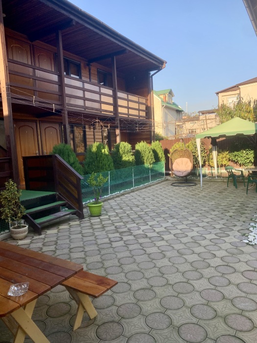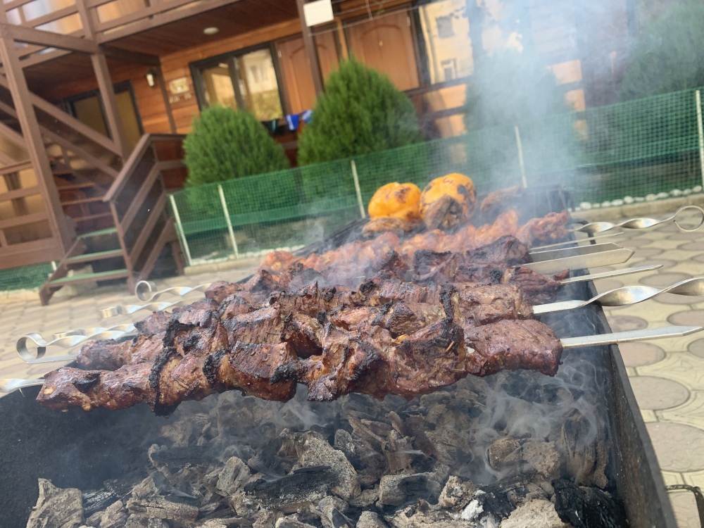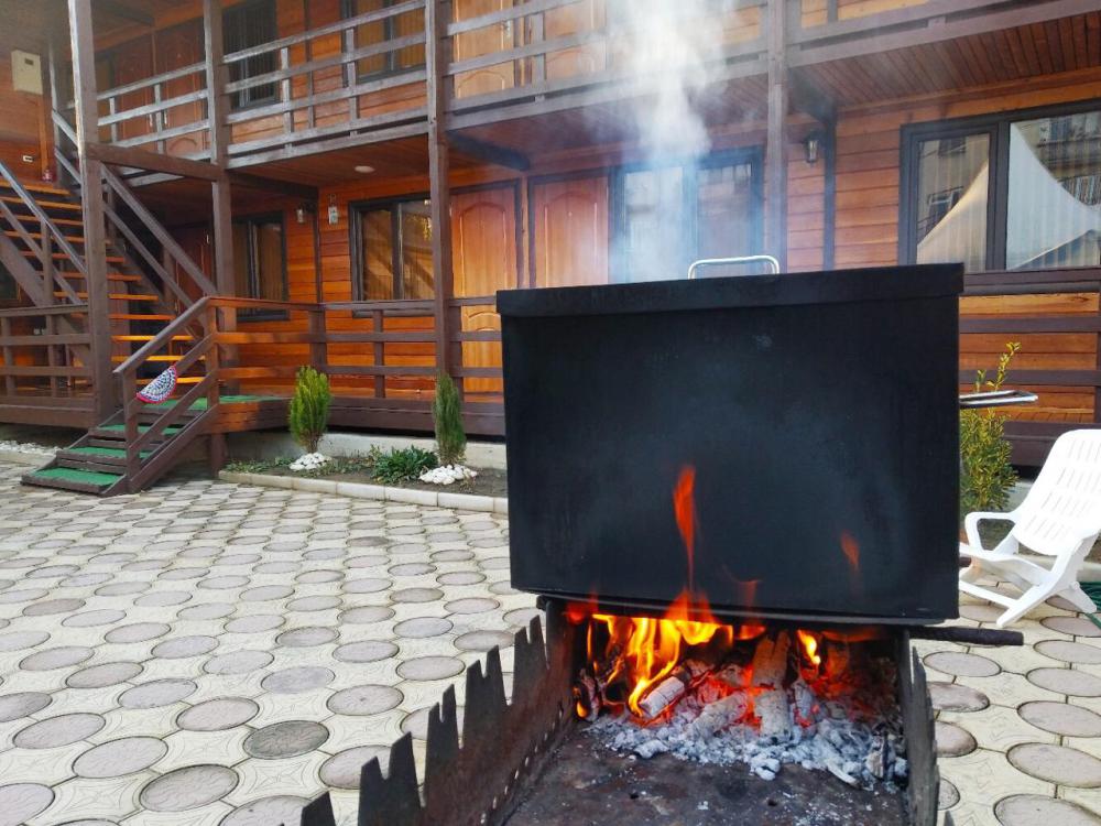 На территории отеля для Вас: оборудованная зона барбекю - казан,мангал,коптильня, летняя терраса с полностью оборудованной кухней, кальян, охраняемая парковка на 10 мест, видеонаблюдение, стиральная машина, высокоскоростной WI-FI по всей территории отеля. Алкогольные и безалкогольные напитки местного производства, всегда в охлажденном виде. Домашнее вино, чача, горный мед, домашние компоты (фейхоа, лавровишня, алыча, мушмула). Без добавления консервантов, все натуральное.