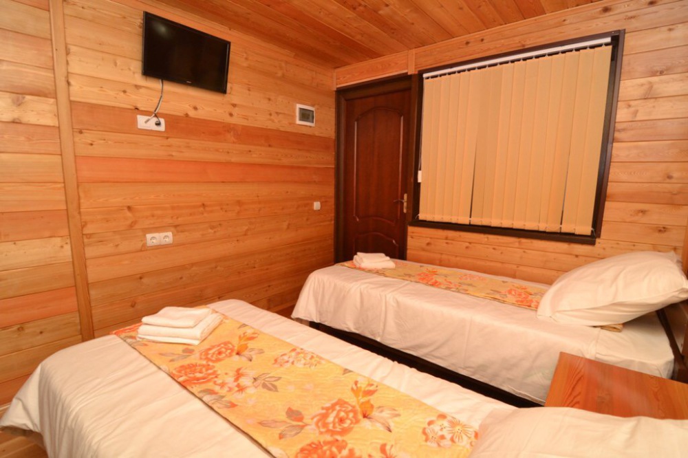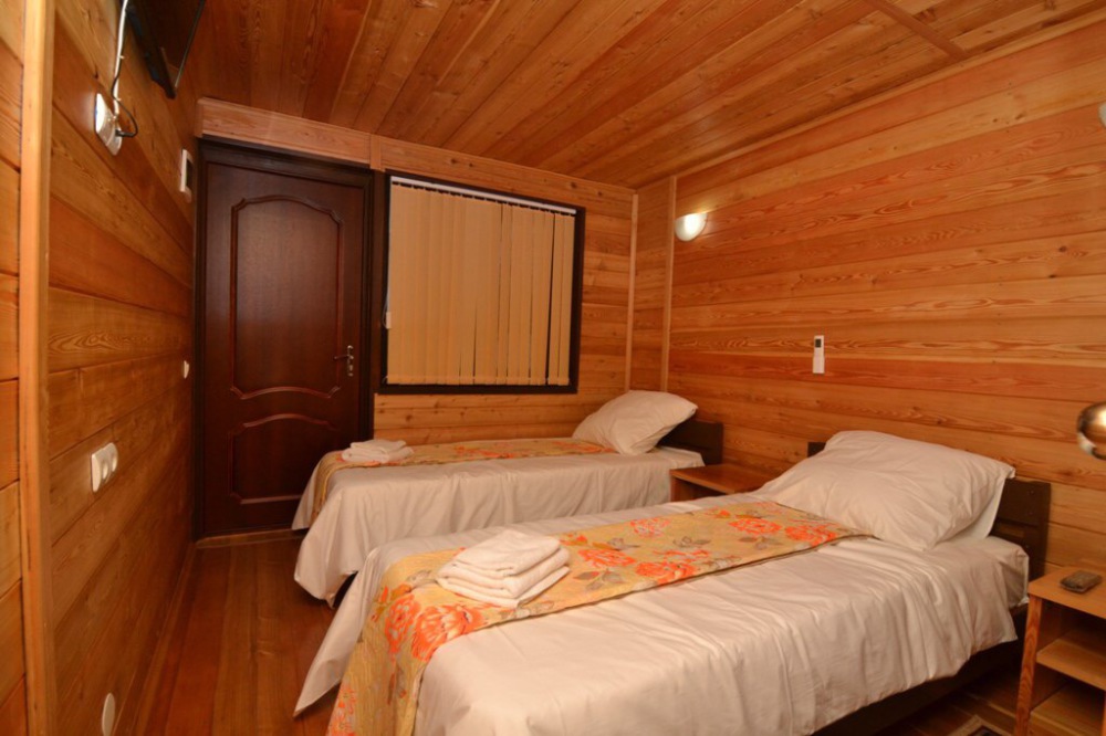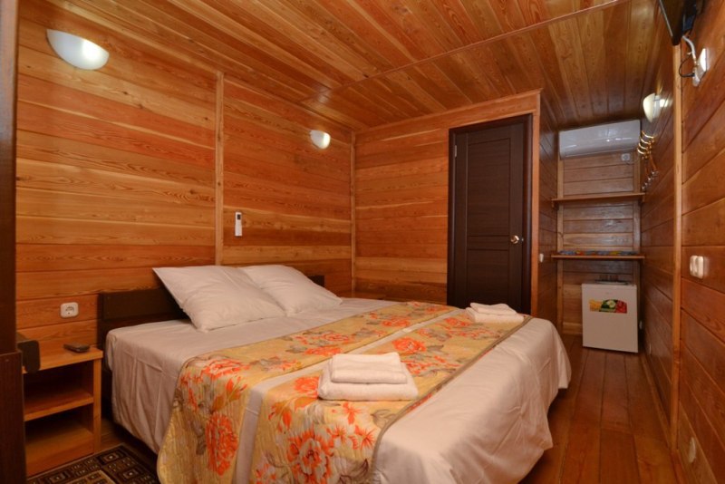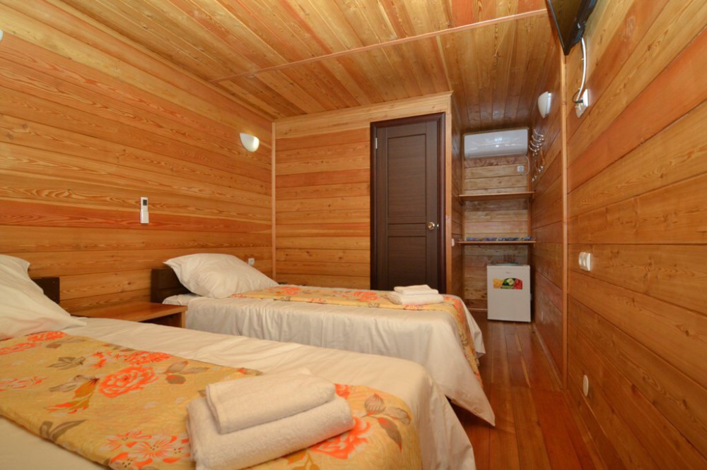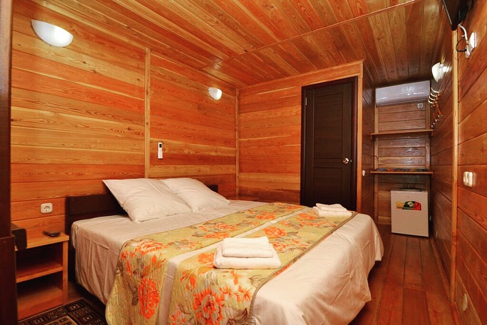 Все номера соответствую названию эко - мебель выполнена также из массива дерева и обладает приятным запахом и гипоаллергенными свойствами. Уборка номера производится раз в 3 дня. Удобства в номере: сплит-система, телевизор, холодильник, ТВ с плоским экраном, WI-FI по всей территории отеля, фен, балкон, полноценный сан узел в каждом номере (туалет и душ), горячая и холодная вода постоянно.
