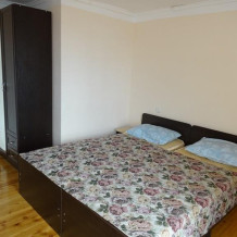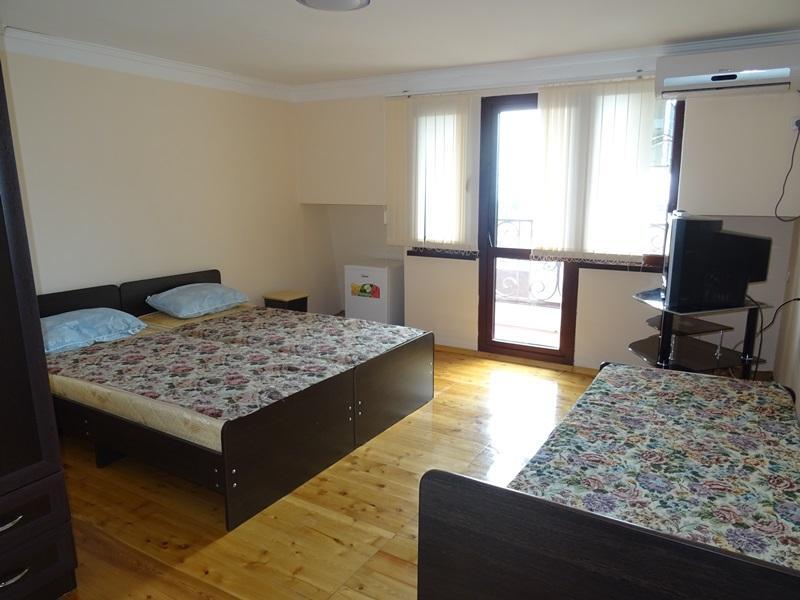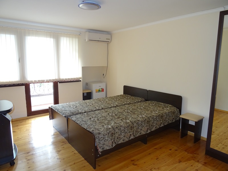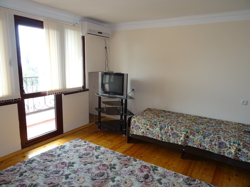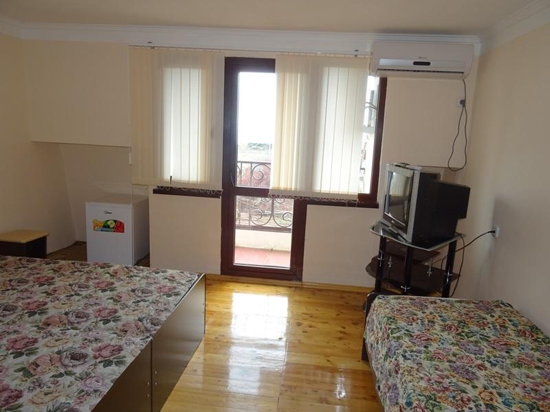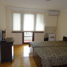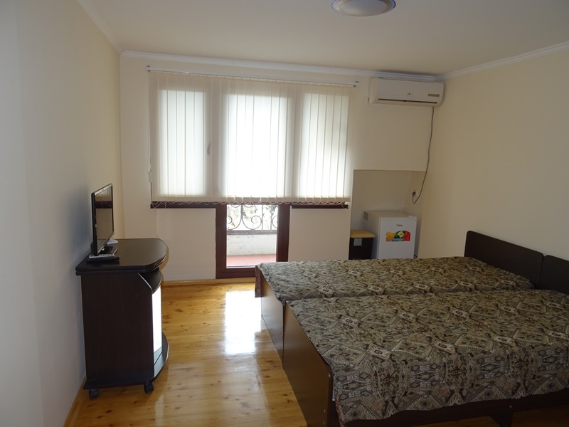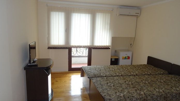 В номере: односпальные или двуспальная кровати, шкаф, прикроватные тумбочки, журнальный столик, зеркало, сплит-система, телевизор, холодильник.