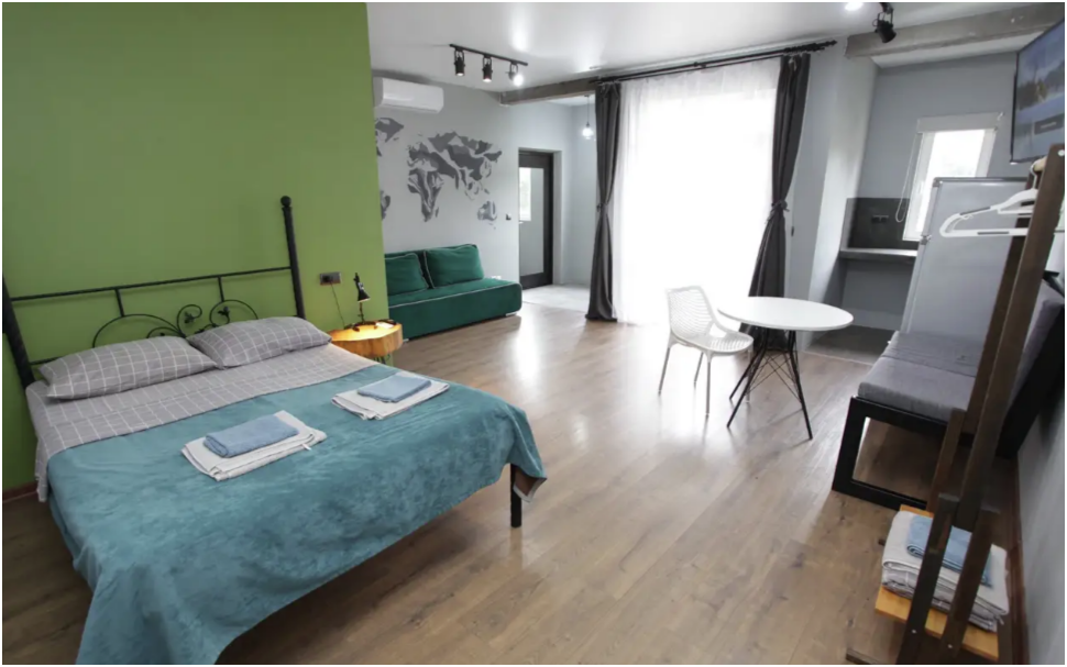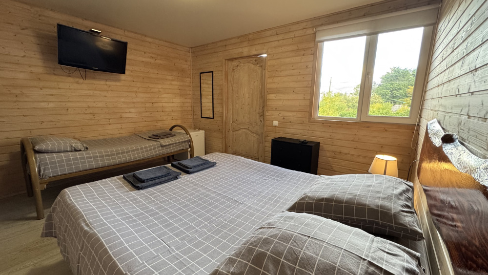 Семейный четырехместный (+2 дополнительных места) номер расположен на первом этаже и состоит из двух комнат, обеспечивая комфортное размещение всей семьи. Расположенный на 1 этаже, этот номер удобен для семей с маленькими детьми или пожилыми людьми, исключая необходимость подниматься по лестнице. Такое размещение отлично подойдет большим семьям и компании друзей. Дополнительно: в номере есть кондиционер, холодильник, телевизор (SmartTV), душ/туалет, фен, набор полотенец.