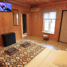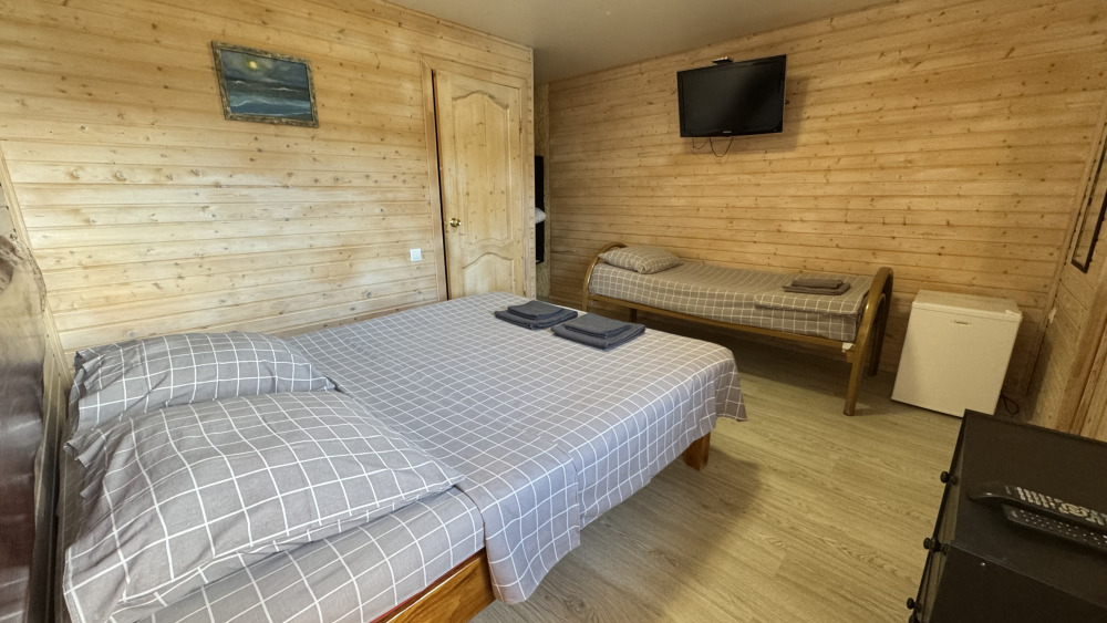 Двухместный номер улучшенный с двуспальной кроватью и дополнительным местом представляет собой уютное пространство, рассчитанное на размещение двоих взрослых и одного ребенка или дополнительного взрослого гостя. В номере есть всё необходимое для комфортного проживания: двуспальная кровать, кондиционер, мини-холодильник, телевизор, бесплатный Wi-Fi. Идеально подходит для тихого отдыха вдвоём. Дополнительно: душ/туалет в номере, набор полотенец, фен