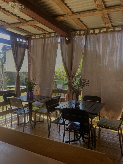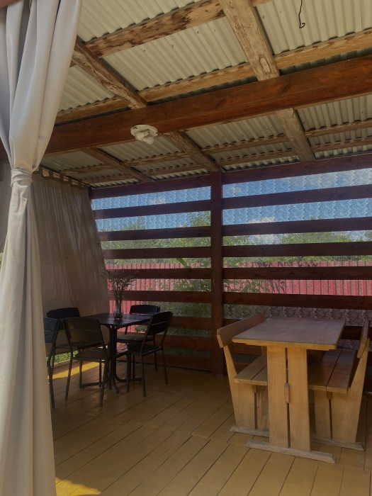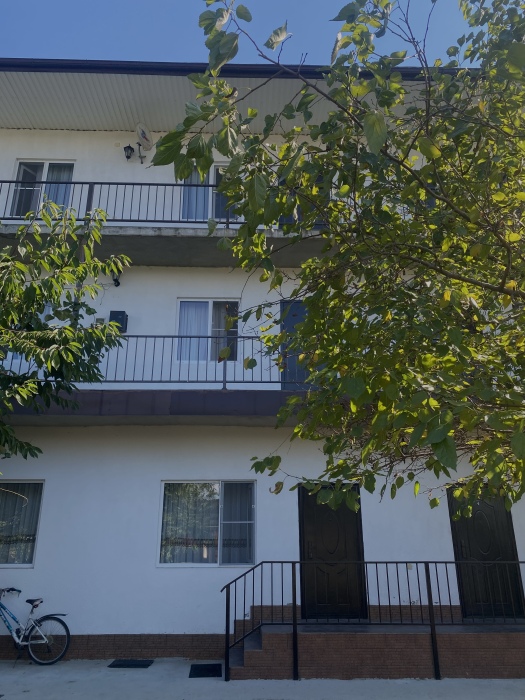Мы отдыхали в гостевом доме «Адан» с 3 по 12 сентября 2024, нам все очень понравилось. Хозяева Анжела и Джон прекрасные люди, гостеприимные и душевные. Всегда готовы помочь, ответить на любые вопросы. Номера просто отличные, все чисто, аккуратно, очень большие и просторные. В номере холодильник, кондиционер, телевизор, стол, есть даже фен и место для отдыха (кресло/стул). По всей территории бесплатный Wi-Fi. С общего балкона второго и третьего этажа открывается просто фантастический вид на горы! Огромный закрытый двор. Много зелени и плодовых деревьев (хурма, киви, гранат, цитрусы, авокадо и т.п.) Столик под естественным навесом из киви нас покорил) Так же во дворе есть навес с небольшой столовой и общей кухней, оборудованной всем необходимым для приготовления пищи, и парковка для машин.