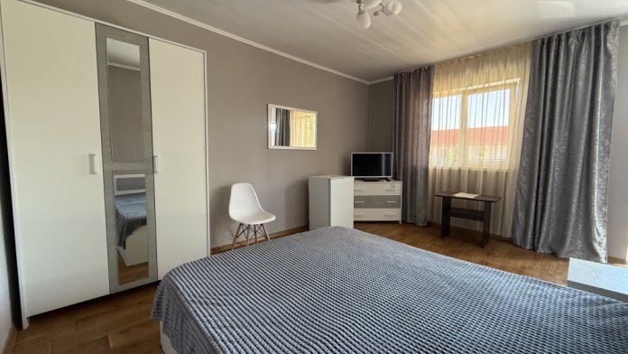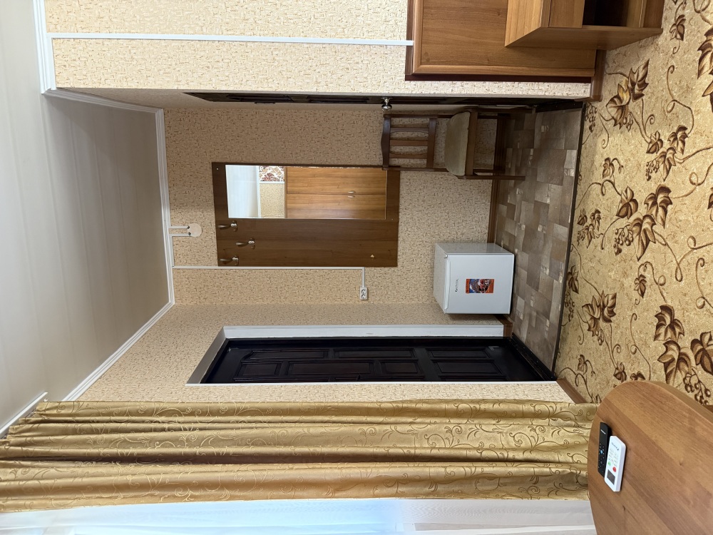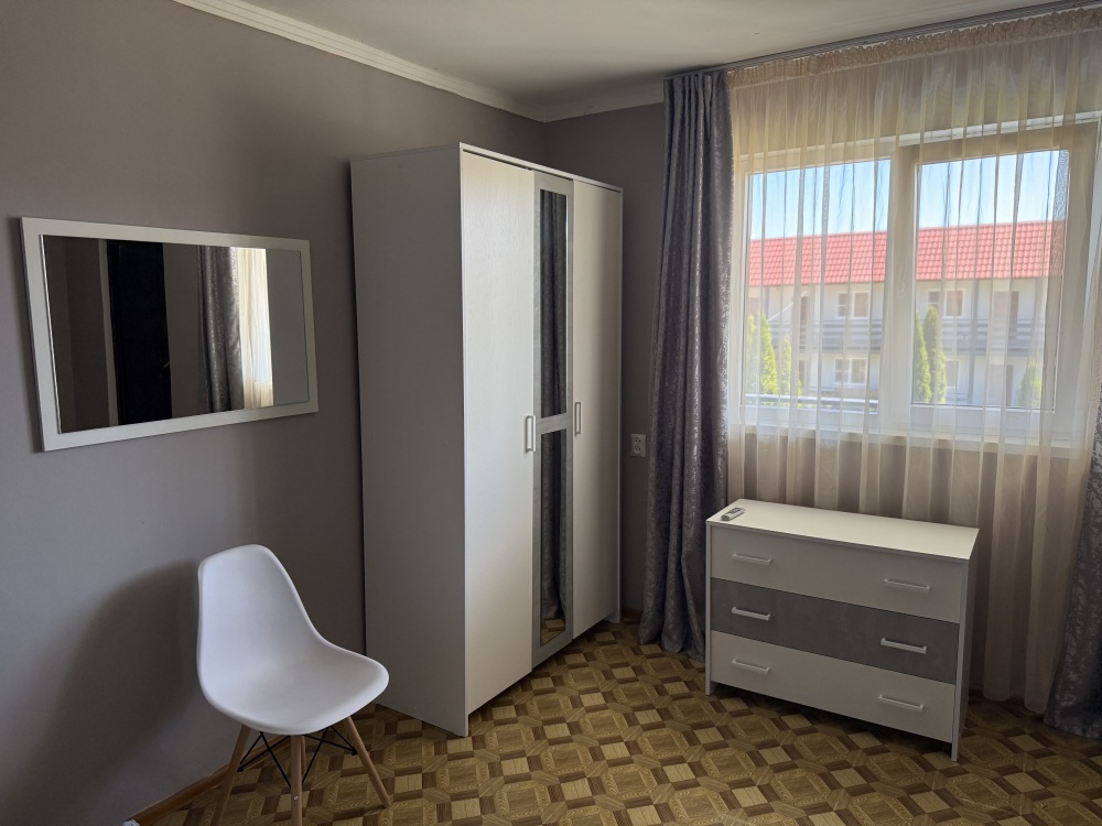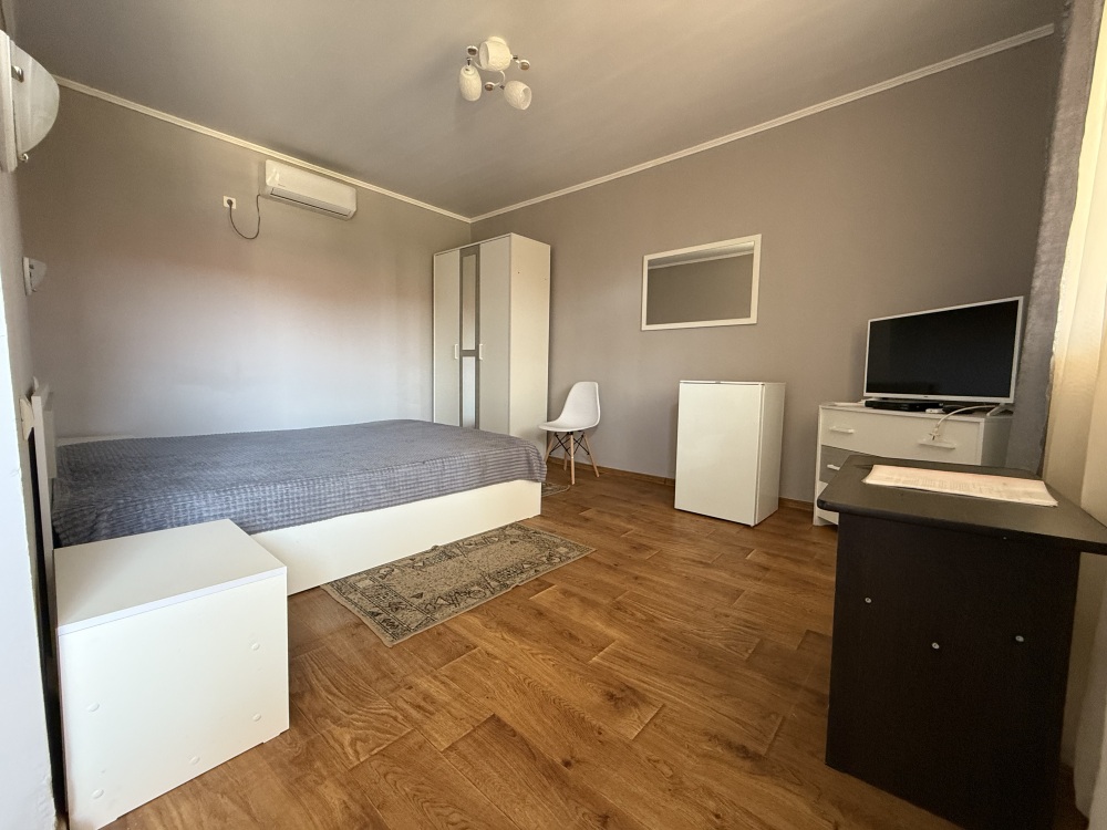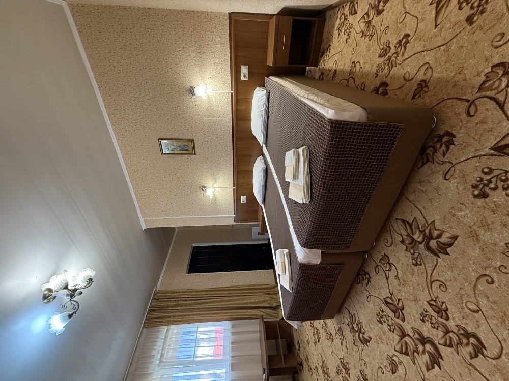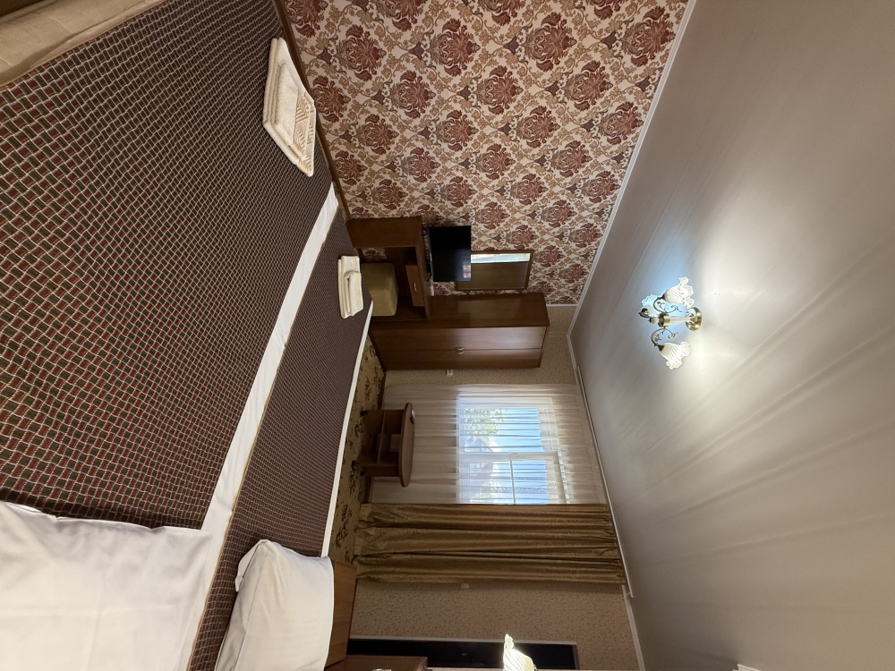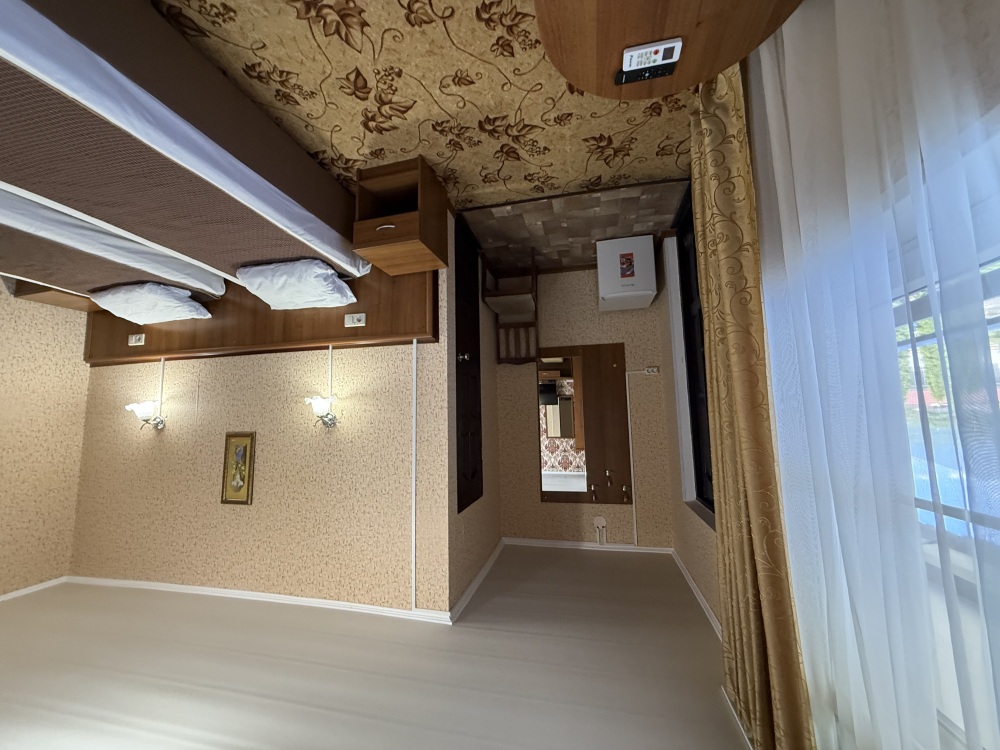 3х местный номер, возможна установка дополнительной кровати для детей до 12 лет. В номере набор необходимой мебели: шкаф для одежды, прикроватные тумбочки, стол, стул, пуфик, зеркала, холодильник, телевизор, кондиционер.