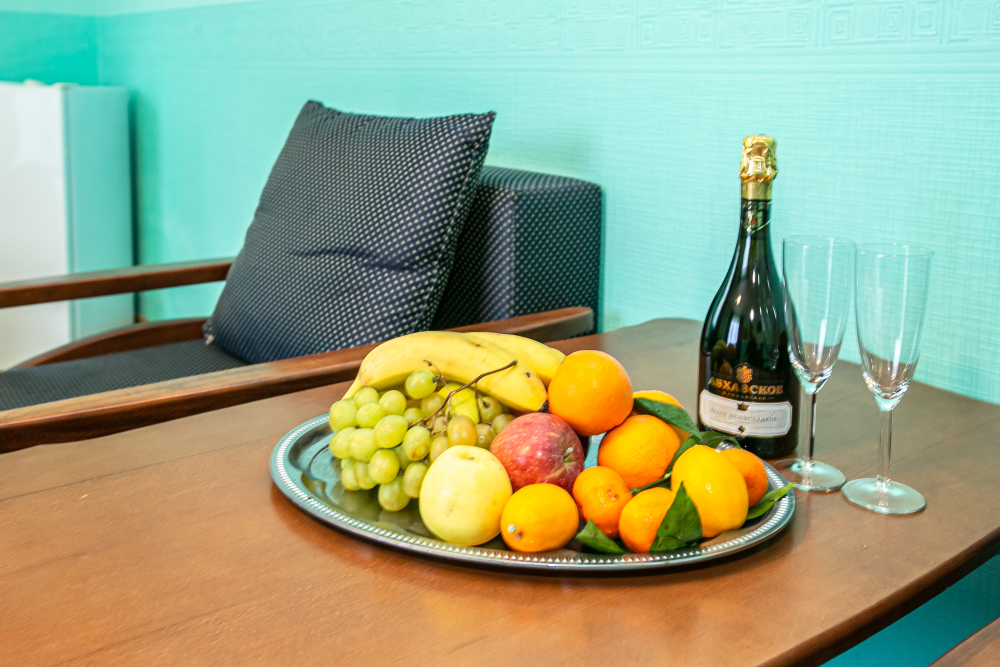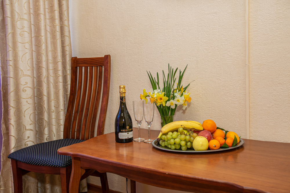 В распоряжении наших гостей однокомнатные номера типа «Стандарт» и «Полулюкс» с видом на море и набережную, рассчитанные на комфортное пребывание 2-3 человек, а также двухкомнатные номера типа «Люкс» с видом на море и набережную, рассчитанные на комфортное пребывание 4 человек. Персонал нашей гостиницы осуществляет уборку в номерах по запросу гостей, смену полотенец и постельного белья - каждые 2 дня проживания.