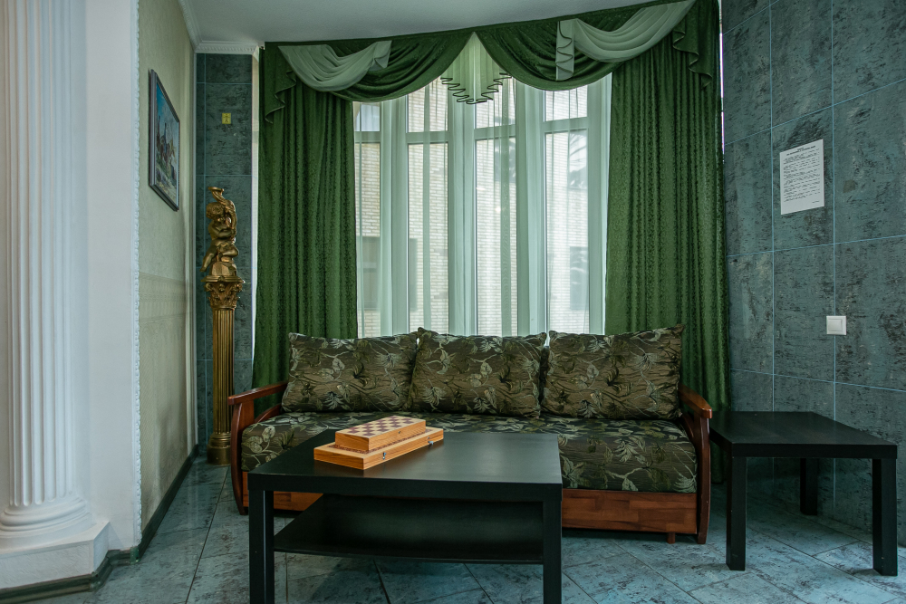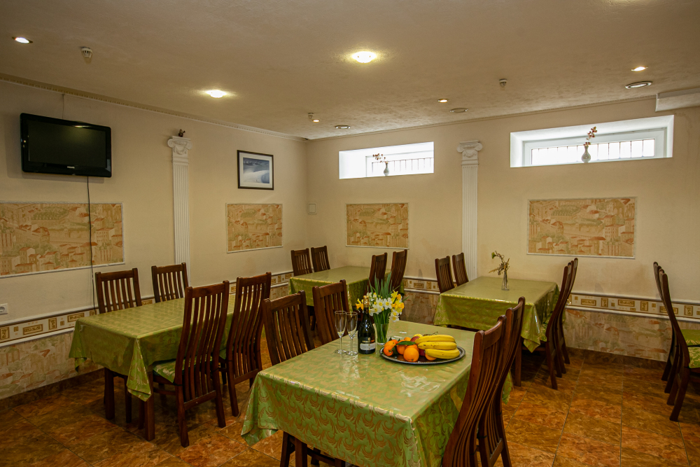 В нашей гостинице есть свое кафе, где посетители смогут питаться на заказ по разнообразному меню за дополнительную плату. В шаговой доступности есть продуктовый магазин, где Вы всегда сможете купить свежие и вкусные продукты, до рынка необходимо проехать на маршрутном такси 15 минут.