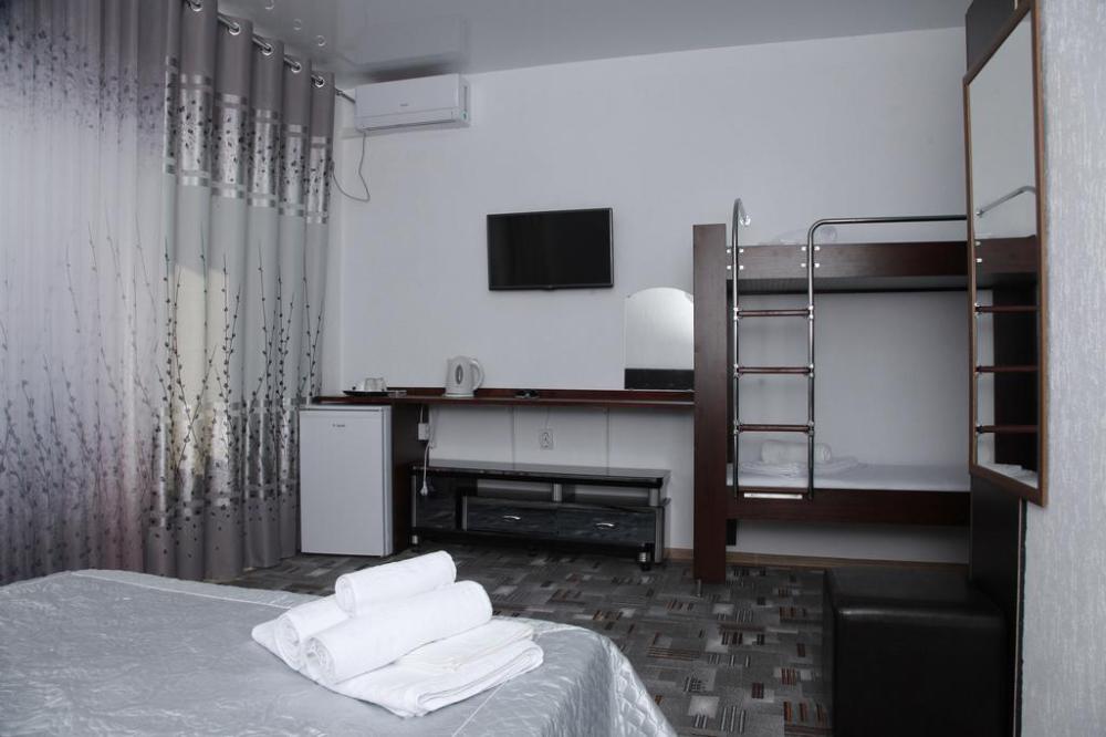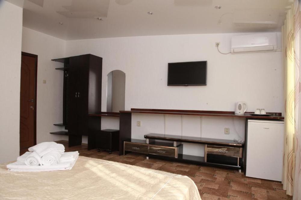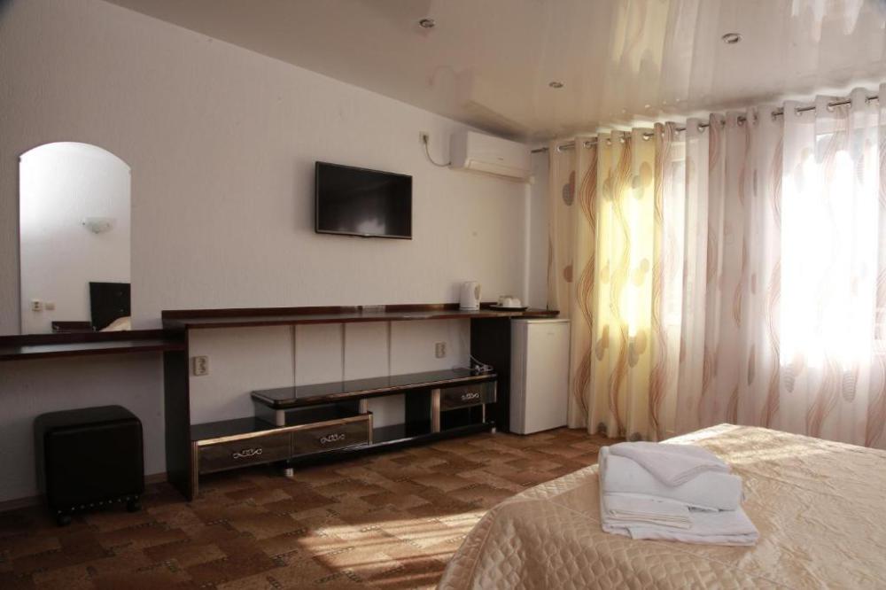 Номера оформлены в современном стиле и оснащены кондиционерами, телевизором с плоским экраном, балконом, холодильником, а также собственная ванная комната с душем. С балконов номеров с одной стороны вид на море, а с другой - живописный вид на горы .