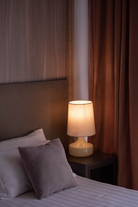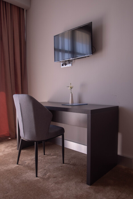 Номера спроектированы в современном стиле с элементами, характерными для дизайна 70‑х: низкие кресла на деревянных каркасах, «космические» шарообразные лампы, удлиненные комоды на тонких ножках, придающих легкости. Напольное покрытие с высоким ворсом отвечает за комфорт и звукоизоляцию в номерах, кровати с матрасами класса Премиум комфорт - за полноценный отдых. В ванных комнатах, отделанных керамогранитом, навесные туалеты и мраморные столешницы. Двери во все номера выполнены из массива дерева для прочности и максимальной звукоизоляции.