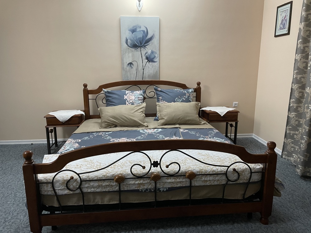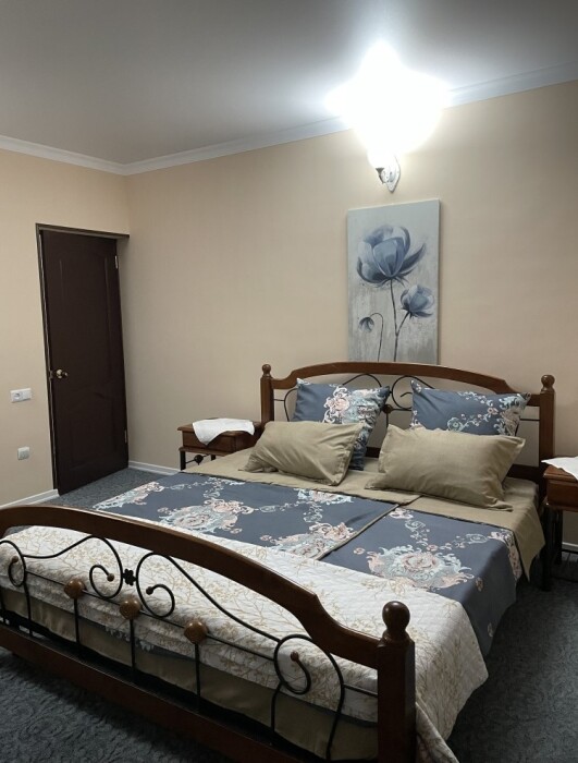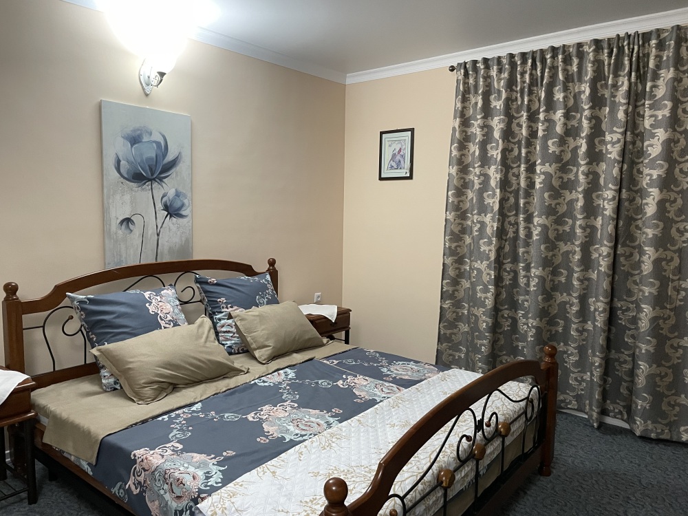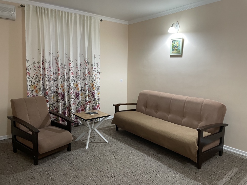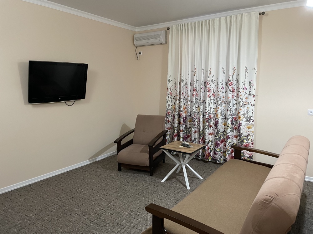 Двухместный стандартные номера расположены на 1 этаже гостевого дома. В номерах все самое необходимое: санузел, кондиционер, телевизор, холодильник, wi-if. Возможно доп. место для 3 гостя (кресло-кровать). На территории есть кухня, где можно готовить самому, мангал, зона отдыха. А также при желании можно заказать завтрак/обед/ужин у хозяйки.