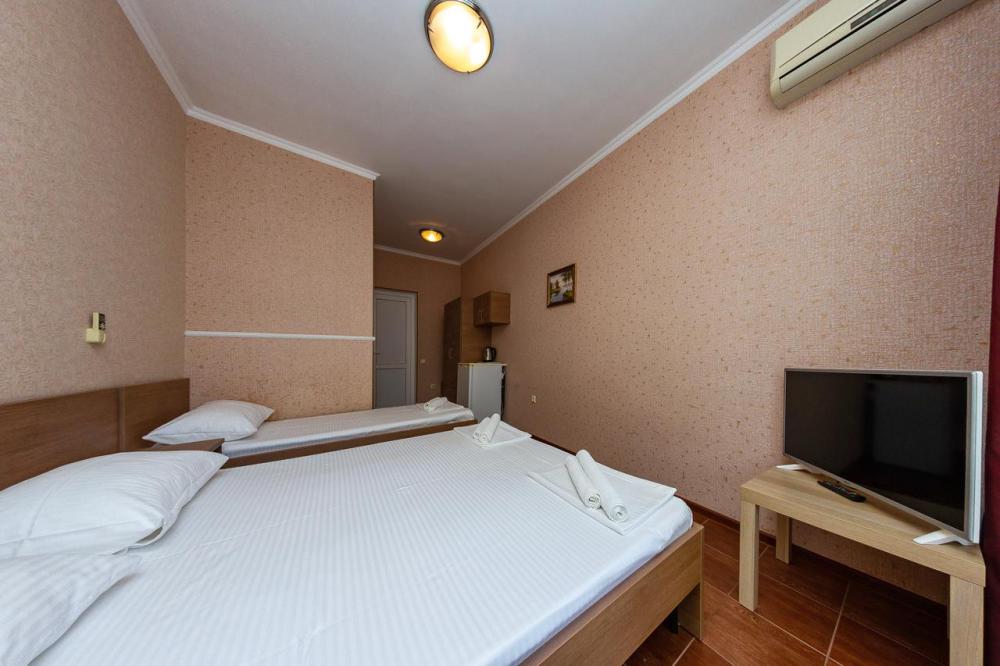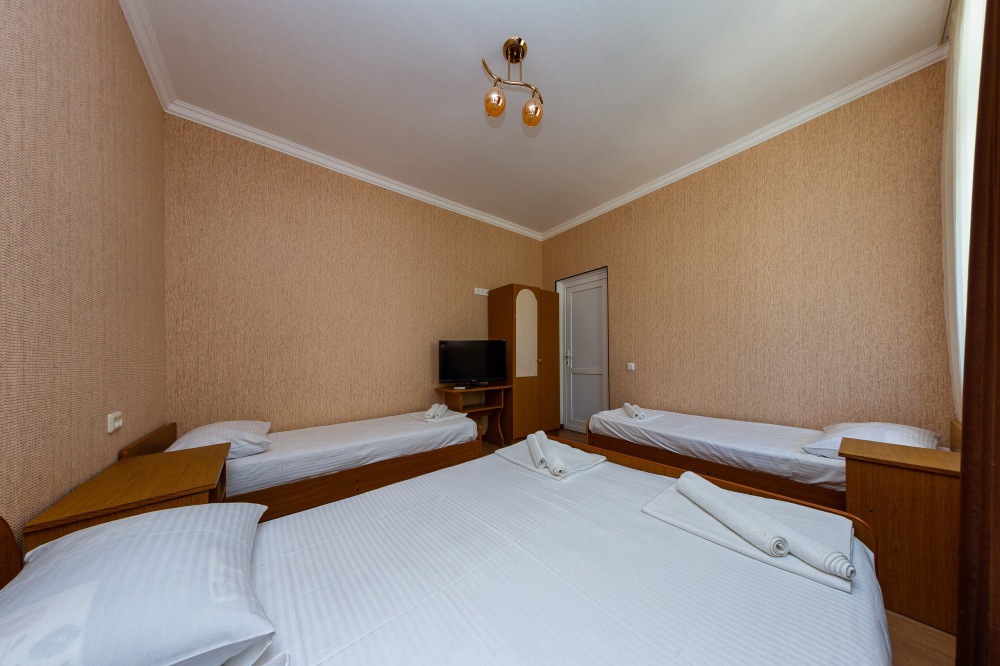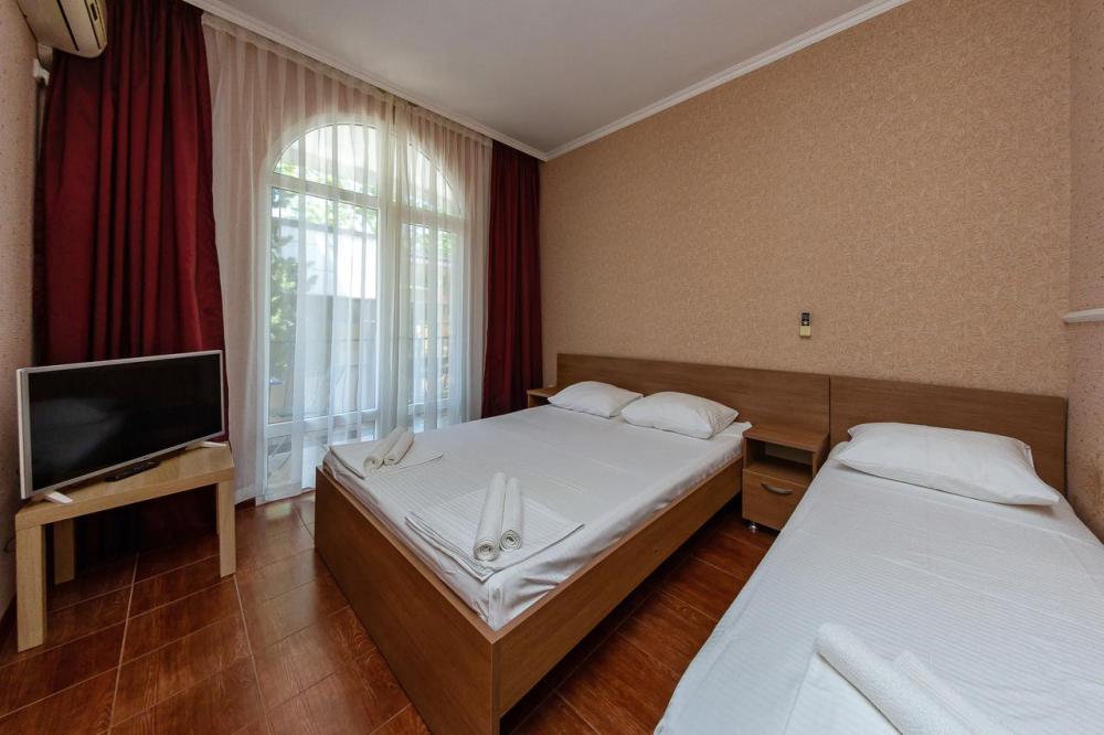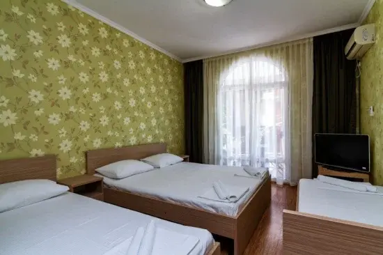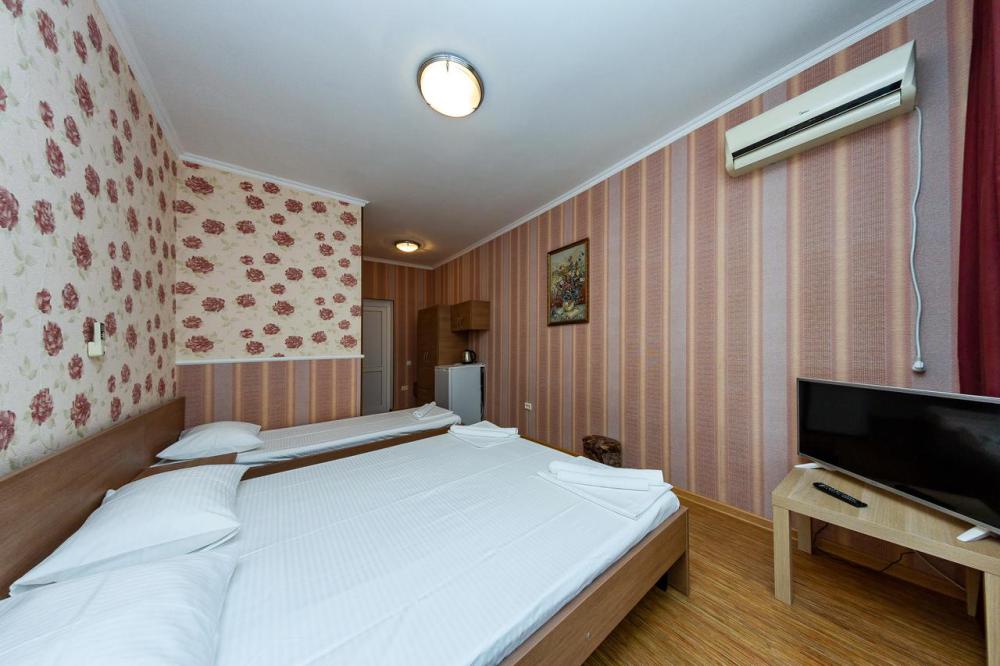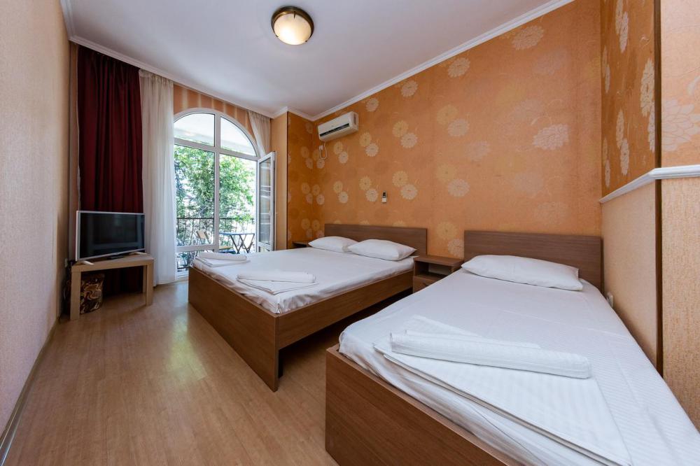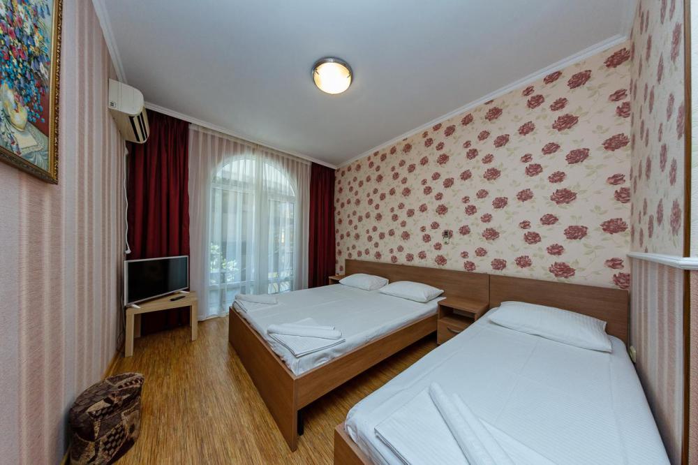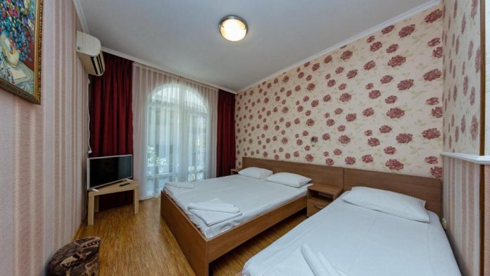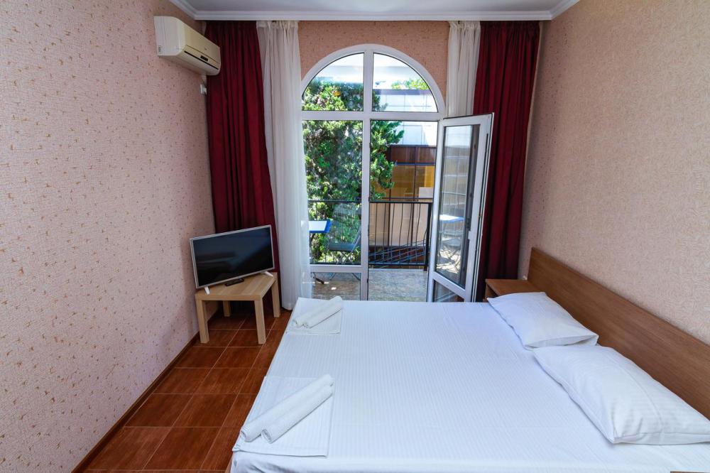 В номерах есть все необходимое для комфортного проживания. В числе удобств: односпальные или двуспальная кровати, прикроватные тумбочки, телевизор, интернет Wi-Fi, санузел и душ, холодильник, балкон с видом на море или достопримечательность, на балконе стол и стулья, сушилка для белья.