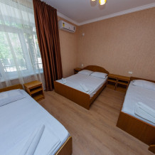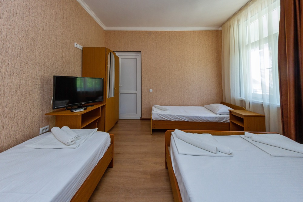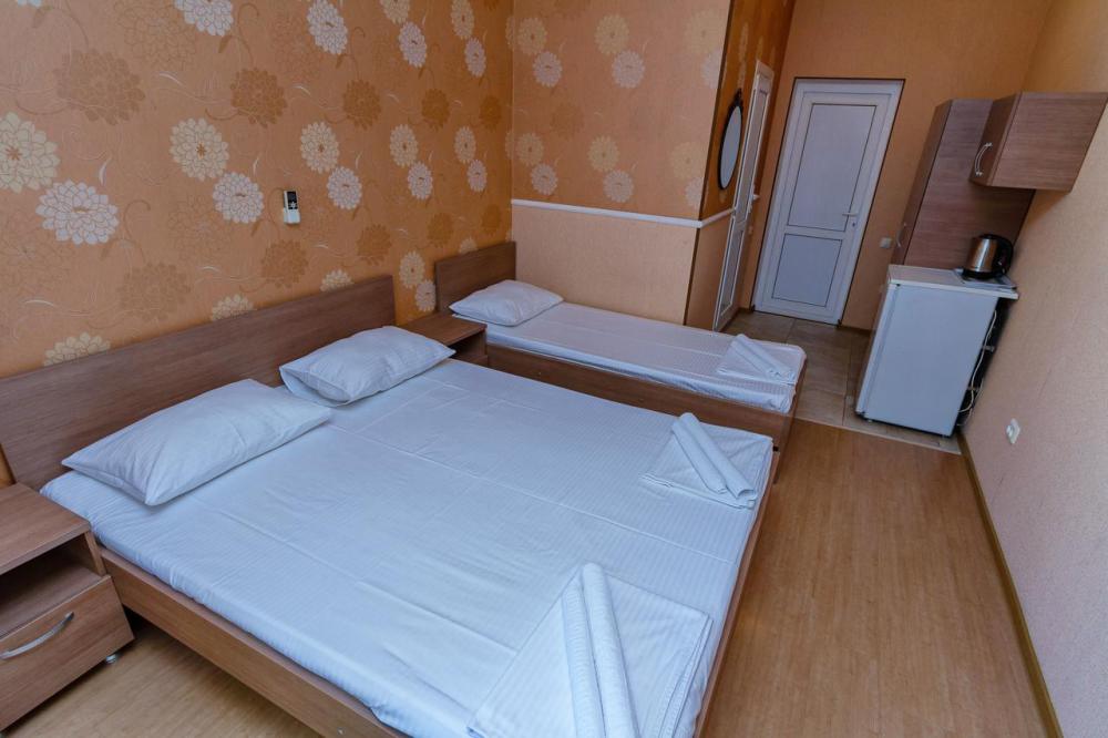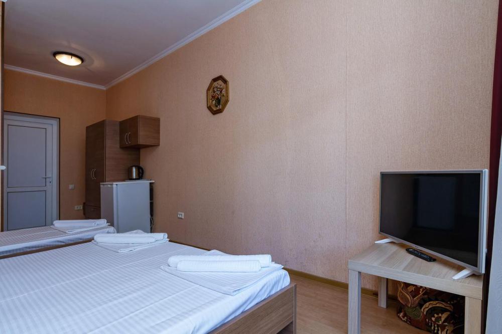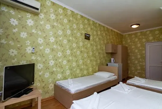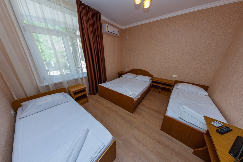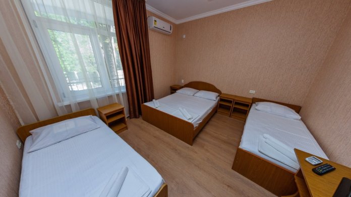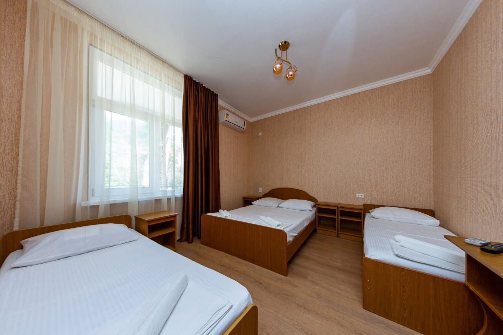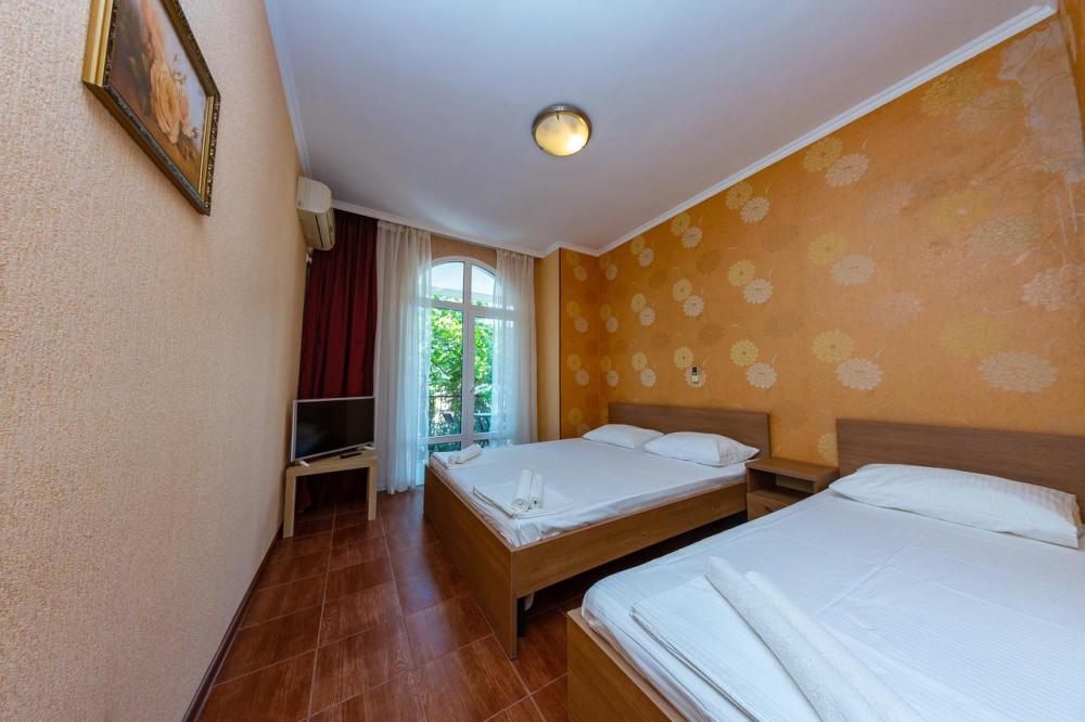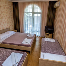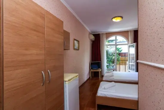 В номерах есть все необходимое для комфортного проживания. В числе удобств: односпальные или двуспальная кровати, прикроватные тумбочки, телевизор, интернет Wi-Fi, санузел и душ, холодильник, балкон с видом на море или достопримечательность, на балконе стол и стулья, сушилка для белья.