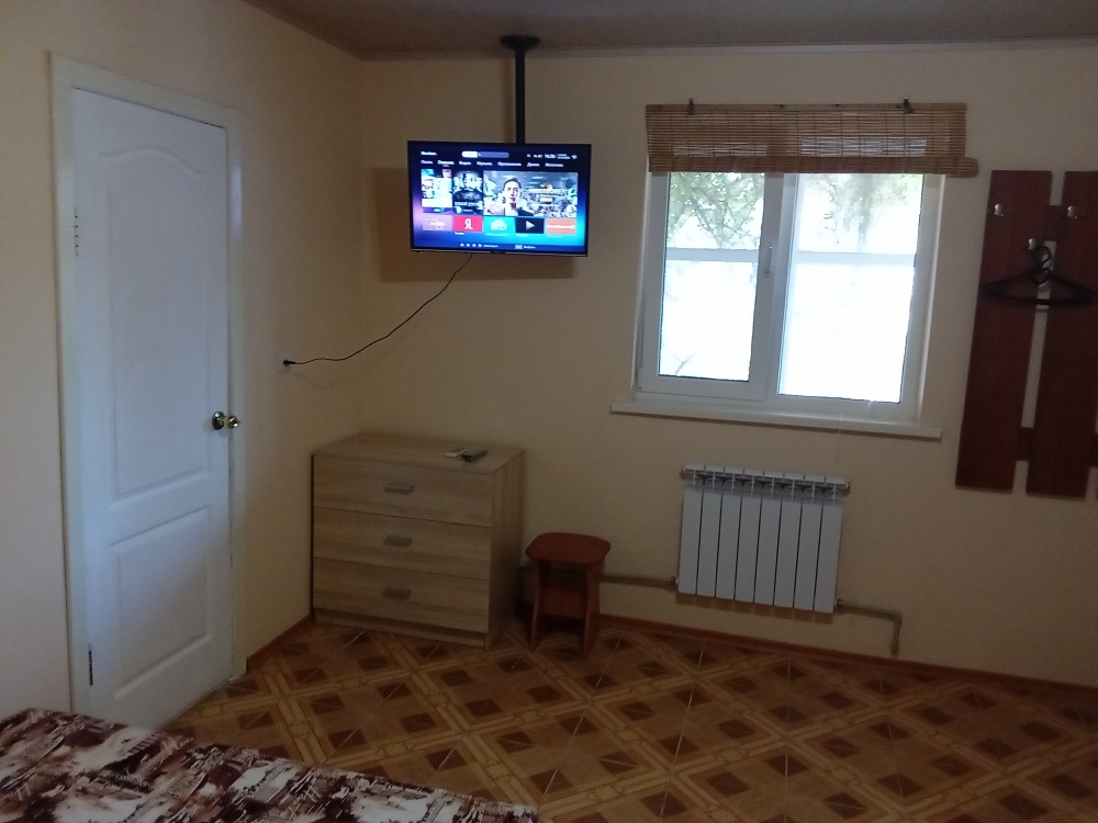 В коттедже иметься кондиционеры, холодильник, телевизоры, стиральная машина, гладильная доска, утюг. Оборудованная кухня для самостоятельного приготовления пищи: посуда, газовая плита, электрочайник. Санузел с душем в коттедже, и дополнительным санузлом на улице. В двух комнатах могут разместиться 6-ть человек, в каждой комнате одна двуспальная и одна односпальная кровати, тумбочки, комод, кондиционер, телевизор. Видовая закрытая терраса с раскладным диваном и журнальным столиком, смотровая площадка, всё для комфортного тихого отдыха.