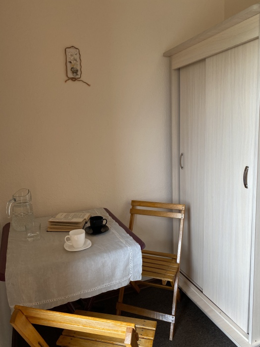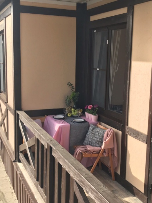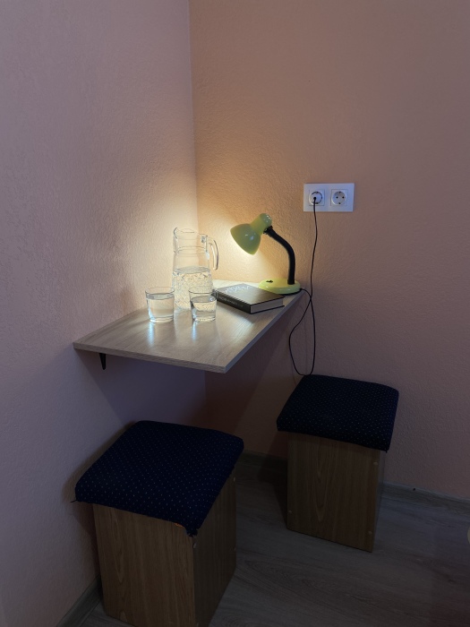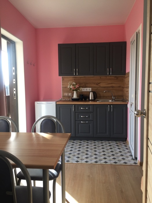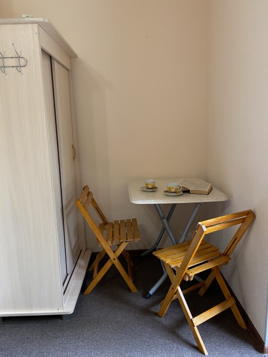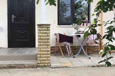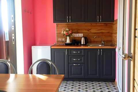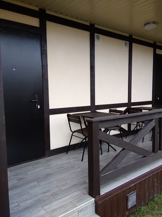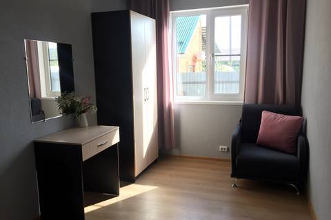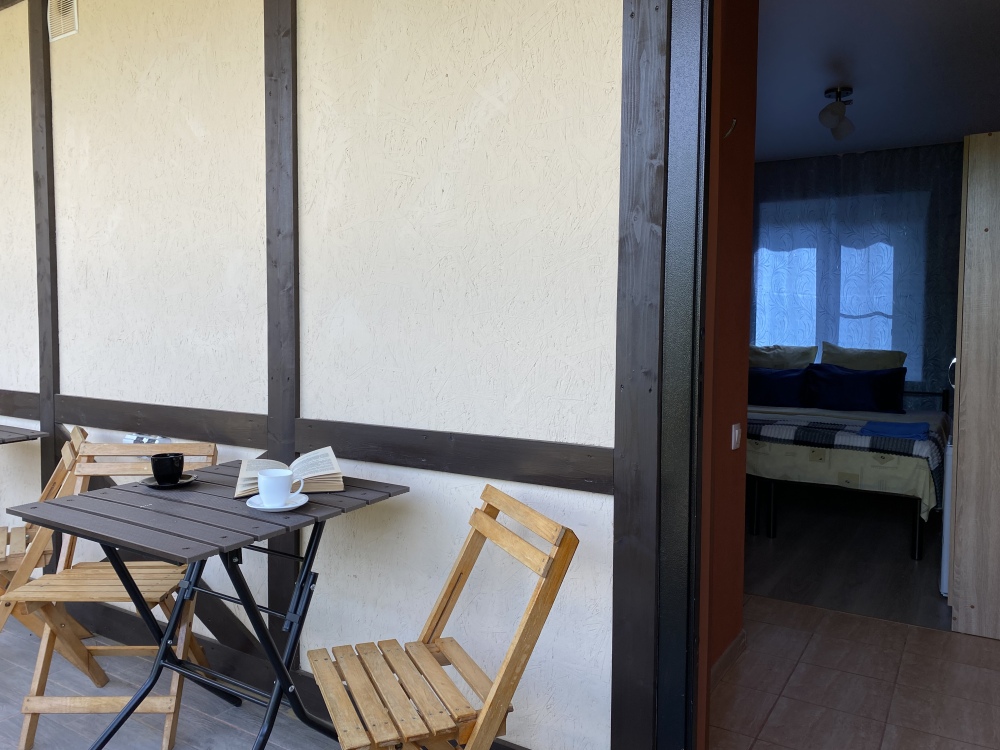 Уютный домик для двоих. На территории розарий, детская площадка, беседка-мангал, зеленые лужайки со скамейками и шезлонгами для отдыха. Общая кухня, где можно приготовить еду. Рядом магазины, столовая, сбербанк.