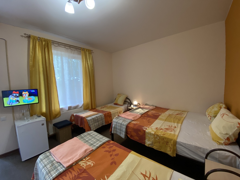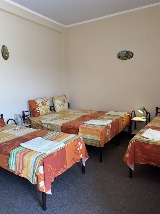 Уютная комната для 3-х человек, оснащенная всем необходимы. Отдельный выход на улицу из комнат 1го этажа и на балкон из комнат 2-го этажа
