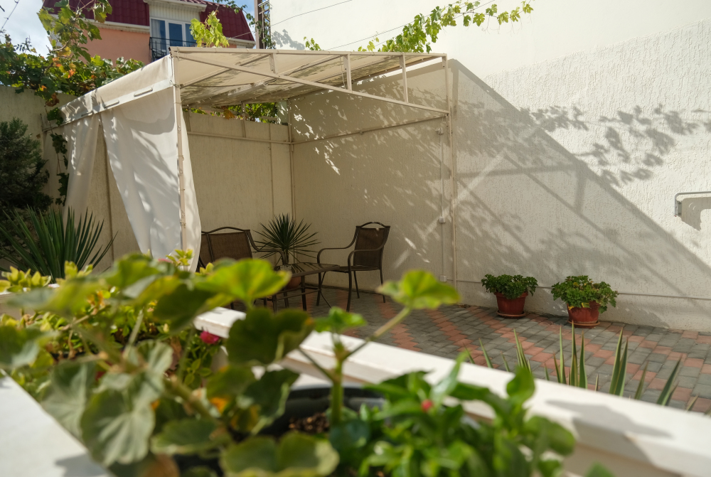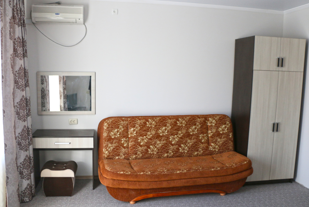 - один трехместный номер с террасой, площадь – 25 м.кв., расположен на первом этаже здания имеет отдельный вход и собственную террасу с зоной отдыха.
