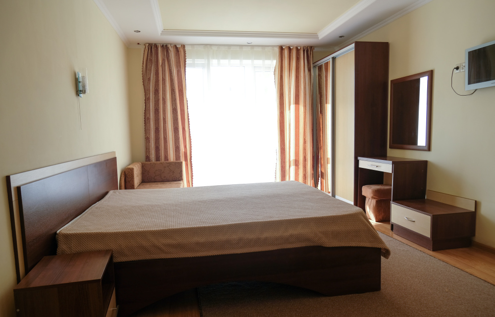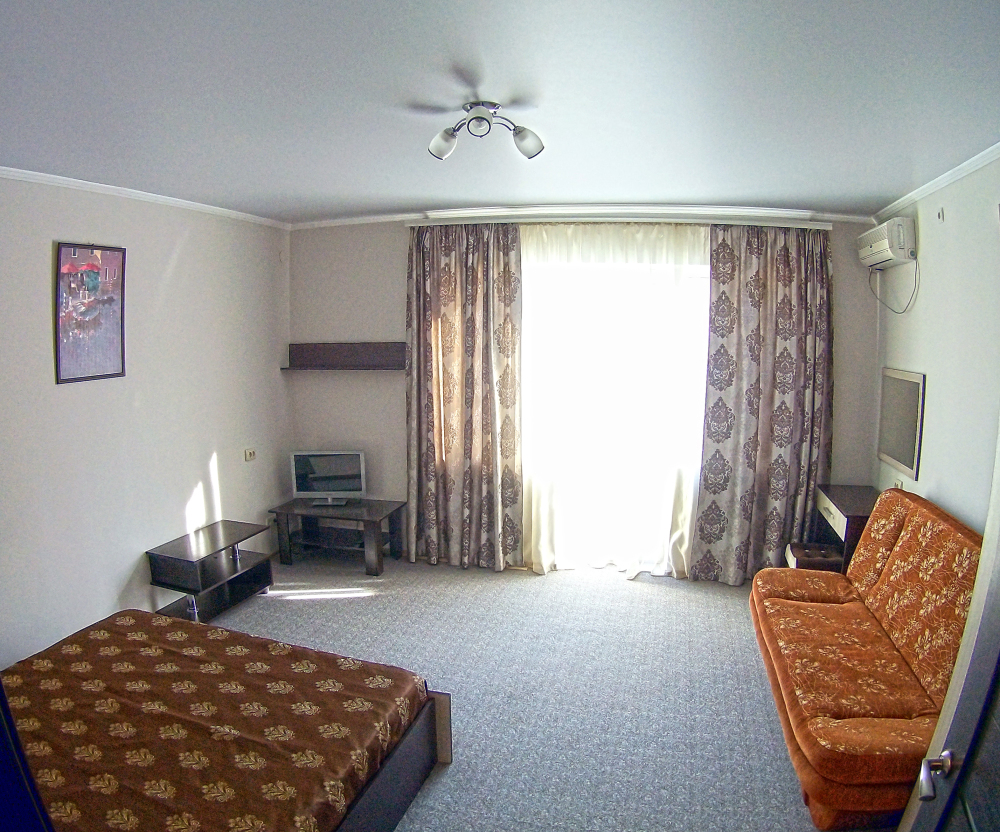 - один двухместный номер с балконом, площадь – 25 м.кв., расположен на втором этаже, Спальные места – кровать двуспальная (1,6 х 2,0 м.).