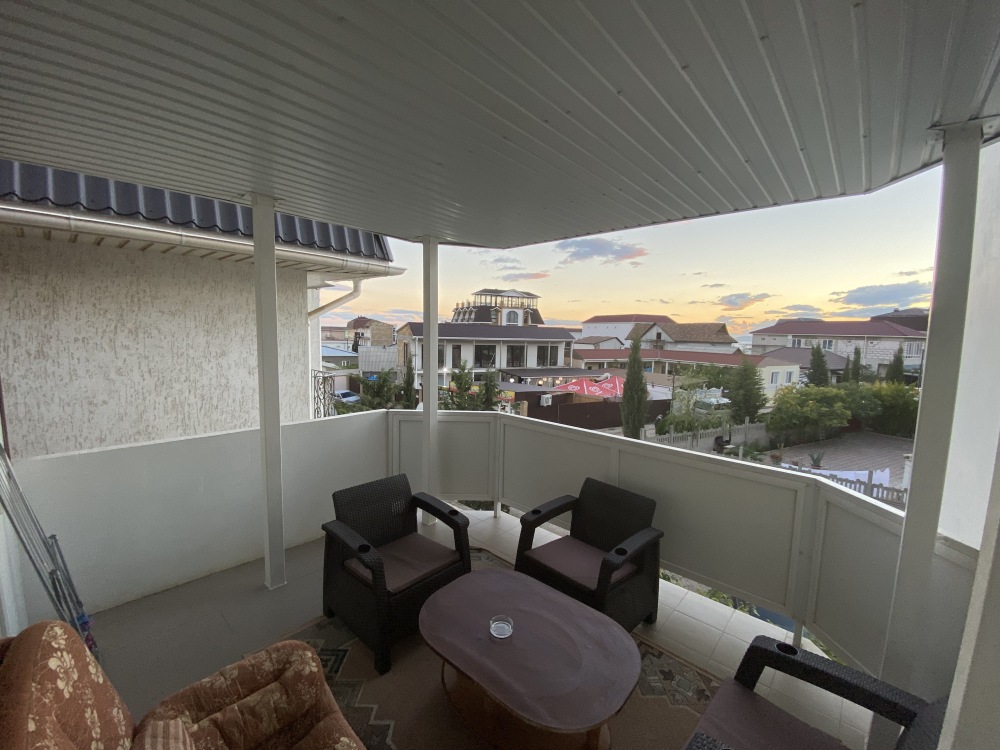- коттедж 4-х местный с балконом и собственной террасой– 35 м.кв., двухэтажное отдельно стоящее здание, на первом этаже гараж, на втором этаже помещение для проживания: коридор, кухня, спальная комната (25 м.кв.), спальные места – кровать двуспальная (1,6 х 2,0 м.) и диван двуспальный раздвижной (1,4 х 2,0 м.). Санузел (унитаз, умывальник, душ кабина). Кухня: холодильник, чайник эл., плита на две конфорки, мойка, кухонная утварь.