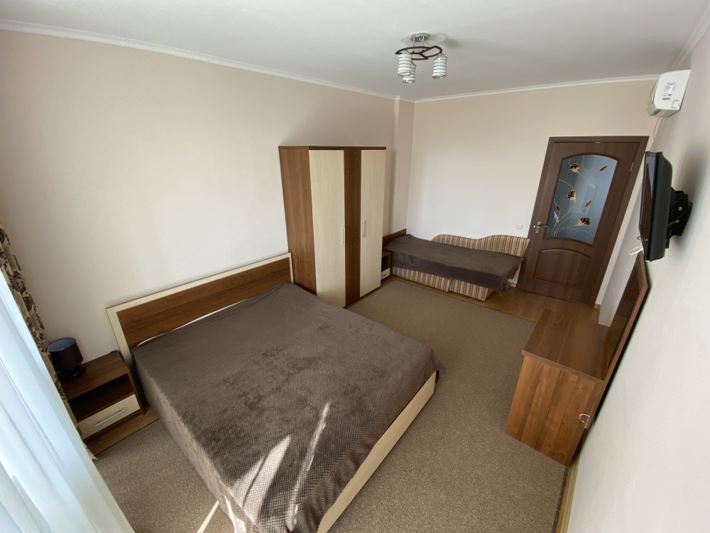 Спальные места: две кровати двуспальные (1,6 х 2,0 м.) и диван односпальный раздвижной (1,0 х 2,0 м.),