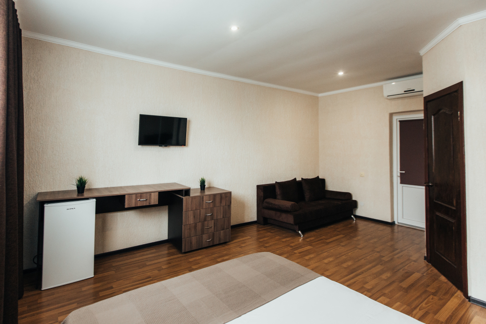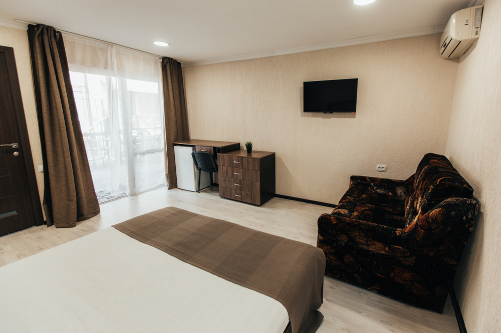 У нас имеется 23 комфортабельных номера, среди которых номера категории Полулюкс и Семейный Полулюкс. Каждый номер представлен в разном архитектурном стиле, что подчеркивает индивидуальность гостиницы. В каждом номере предусмотрено все необходимое для полноценного отдыха: индивидуальное кондиционирование, кабельное ТВ, выход в Интернет, отопление в межсезонье. В ванной комнате: совмещённый санузел с душевой кабинкой, имеется фен и набор ванных принадлежностей. Уборка номеров производится по запросу гостя. К услугам гостей встреча/проводы из аэропорта, бесплатный Wi-Fi, экскурсионное бюро, широкая терраса для отдыха, летний мини-бар, мангал, кухня, парковка. На территории имеется бассейн. В межсезонье он подогревается.