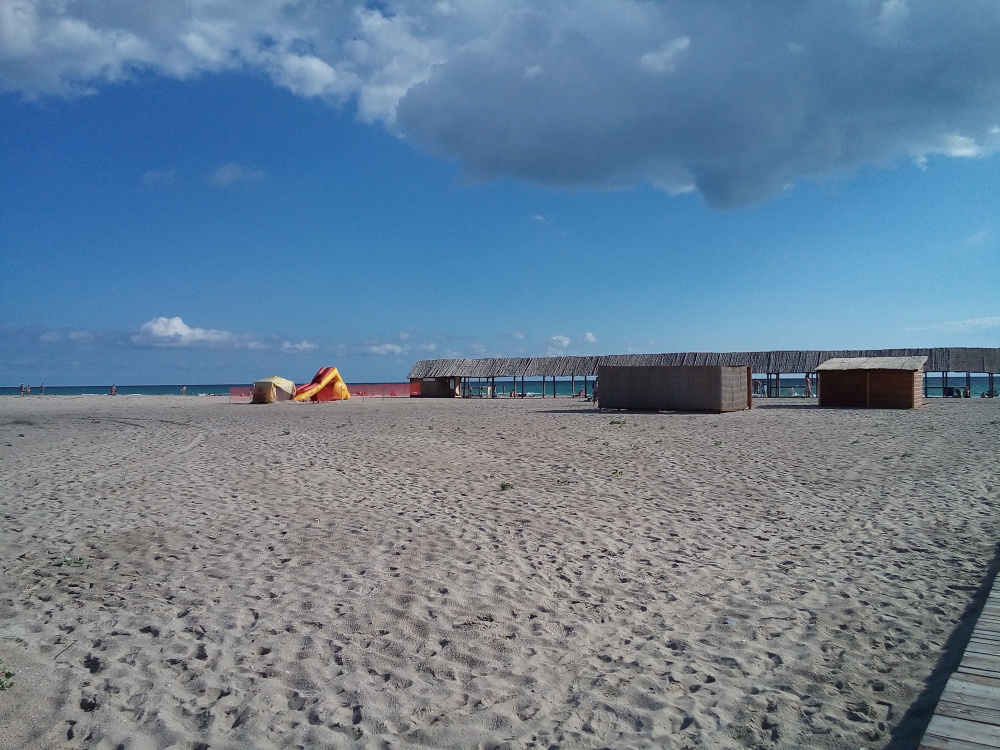 На пляже есть навесы, можно взять шезлонги на прокат, доступны всякие развлечения.