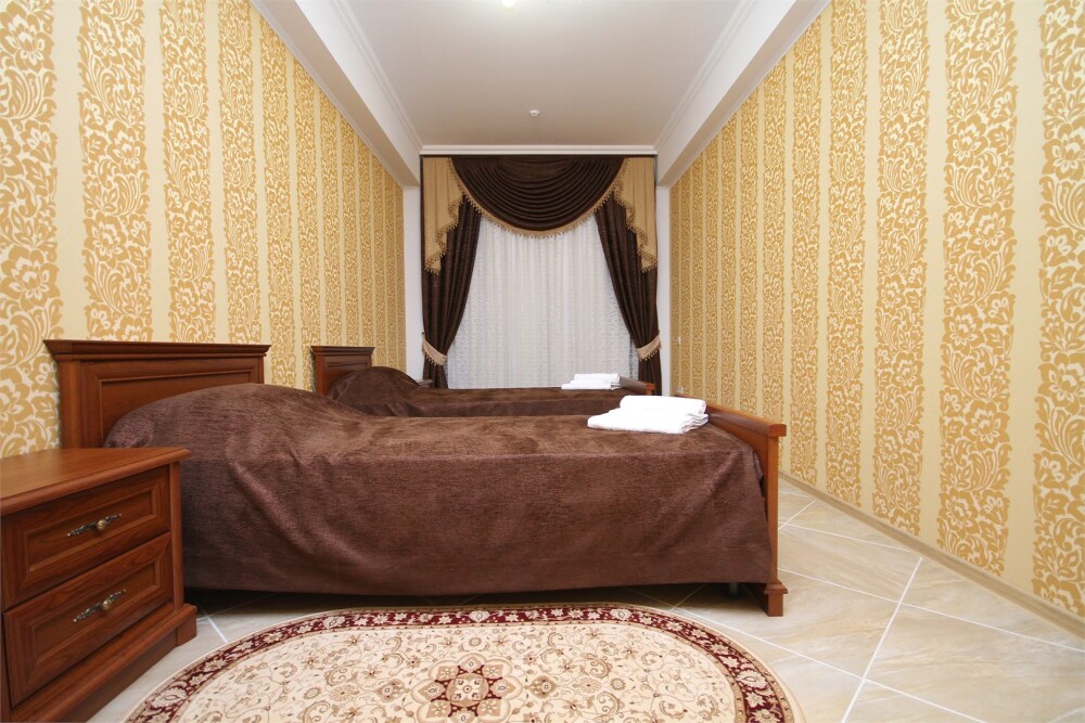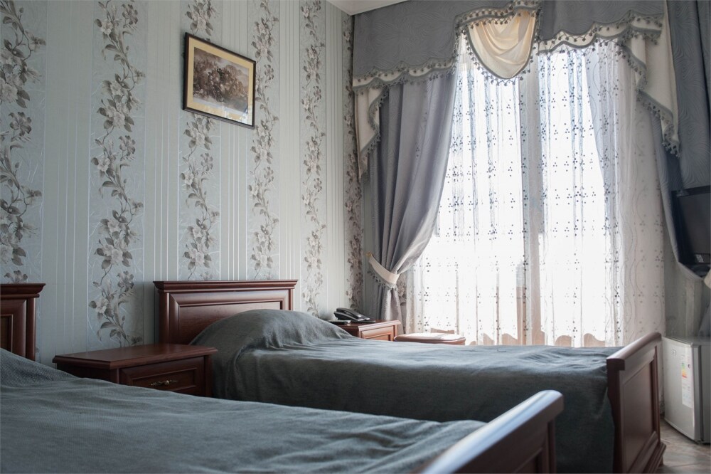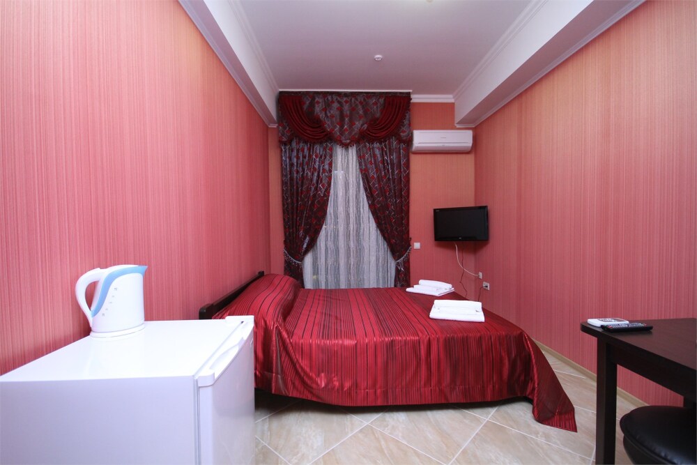 Уютные однокомнатные номера с балконом и без балкона, выполнены в индивидуальном дизайне с одной двуспальной кроватью либо двумя раздельными односпальными. В номере есть все необходимое для комфортного отдыха и работы.