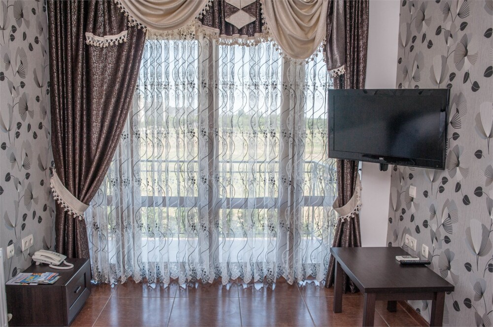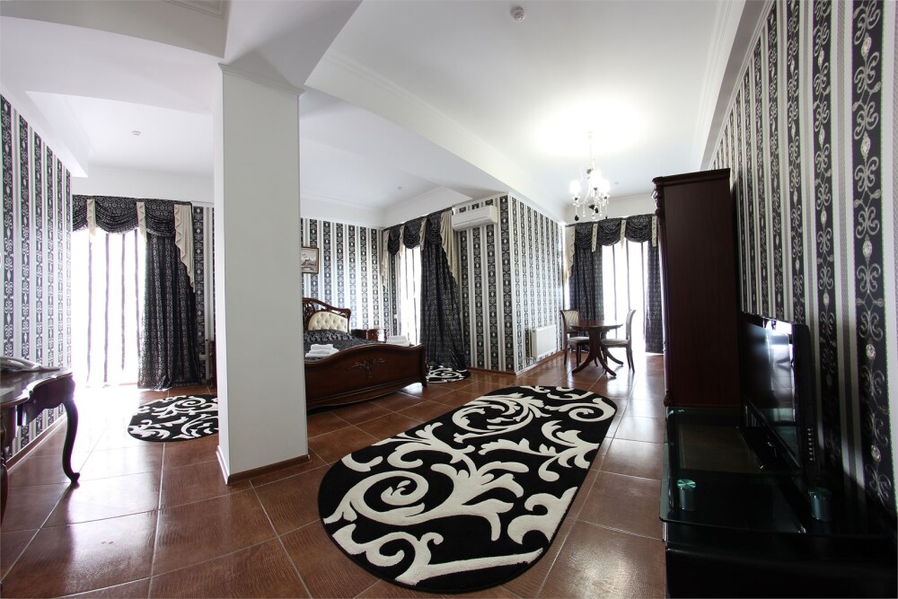 Изысканные, просторные однокомнатные номера с балконом и ванной, в которых есть все необходимое для комфортабельного отдыха и работы.