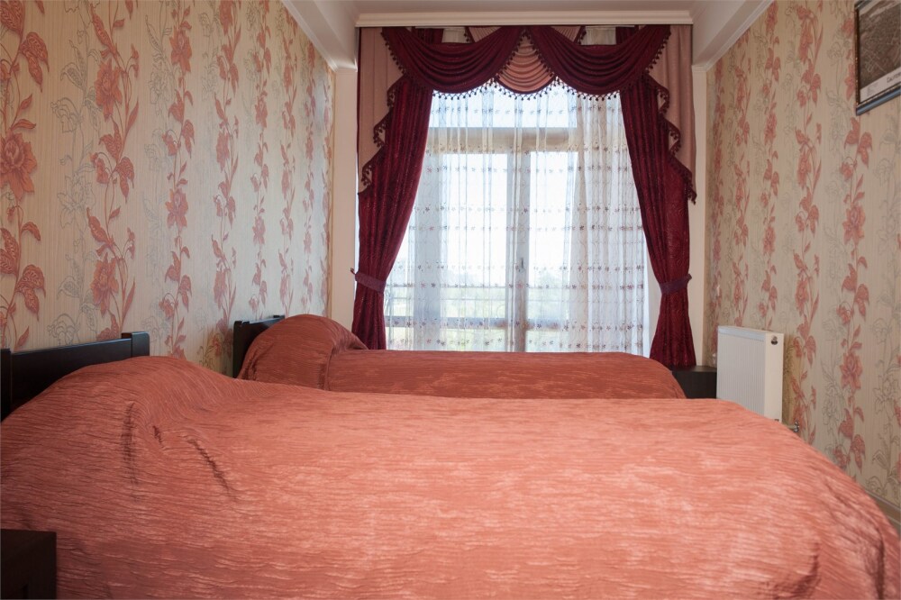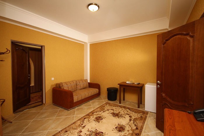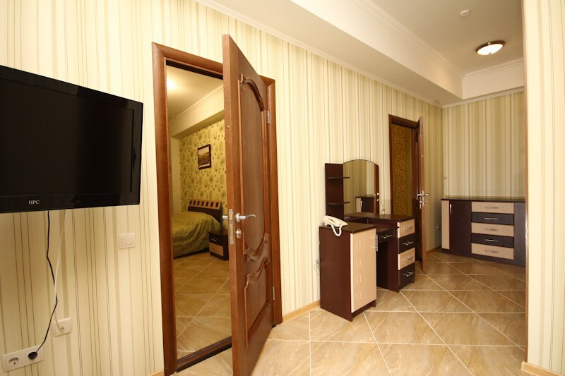Просторный двухкомнатный номер с балконом и ванной комнатой для комфортабельного отдыха семьи или компании. Комнаты раздельные, есть гостиная, имеется вся необходимая мебель.