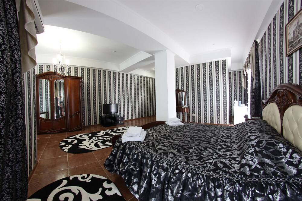 Просторные номера выполнены в индивидуальном дизайне, с балконом, а также без балкона, но с выходом на крышу. Номера оснащены всем необходимым для комфортного отдыха.
