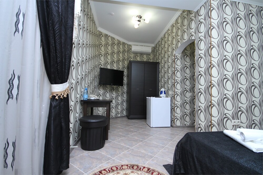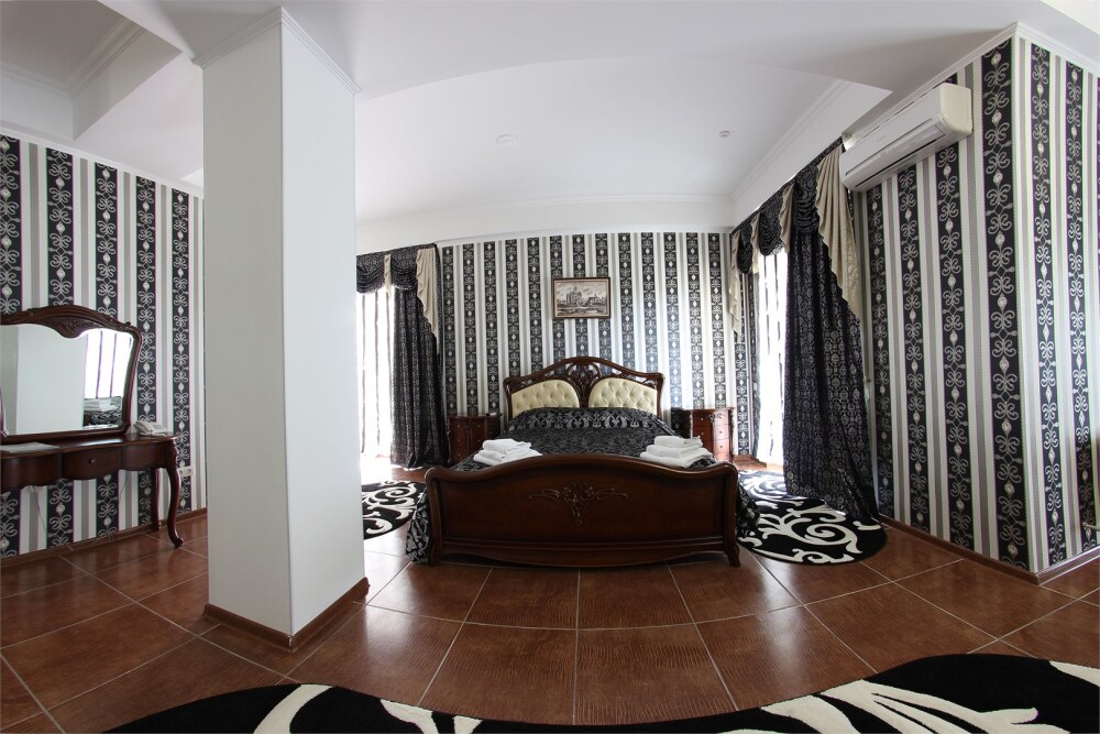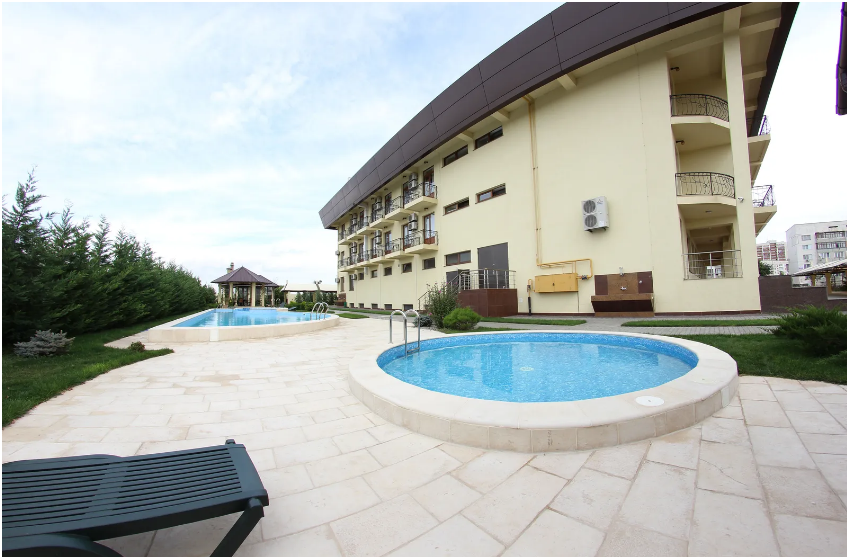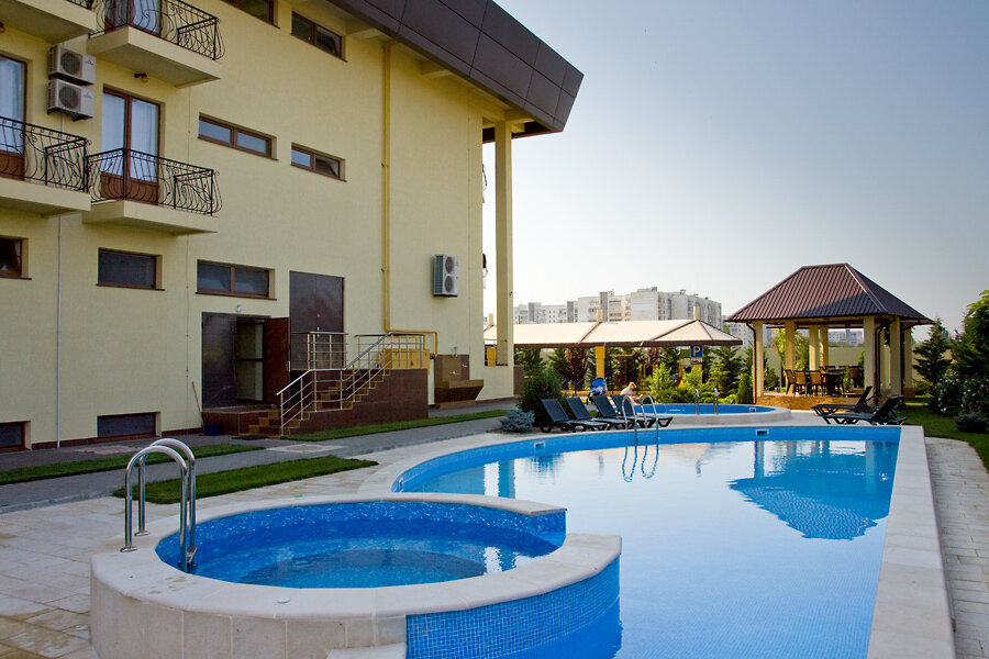 Отель представляет Вам 44 комфортабельных номеров различных категорий: от «Стандарт мини» до класса «Люкс». В отеле есть открытый бассейн с зоной джакузи, где Вы сможете отдохнуть всей семьёй. Для наших самых маленьких гостей есть отдельный бассейн и детская площадка. В отеле работает ресторан на 150 мест, изысканное меню и изобилие блюд из морепродуктов, зона барбекю и летняя площадка. По всему отелю работает Wi-Fi, есть охраняемая автостоянка, круглосуточное видеонаблюдение и охрана.