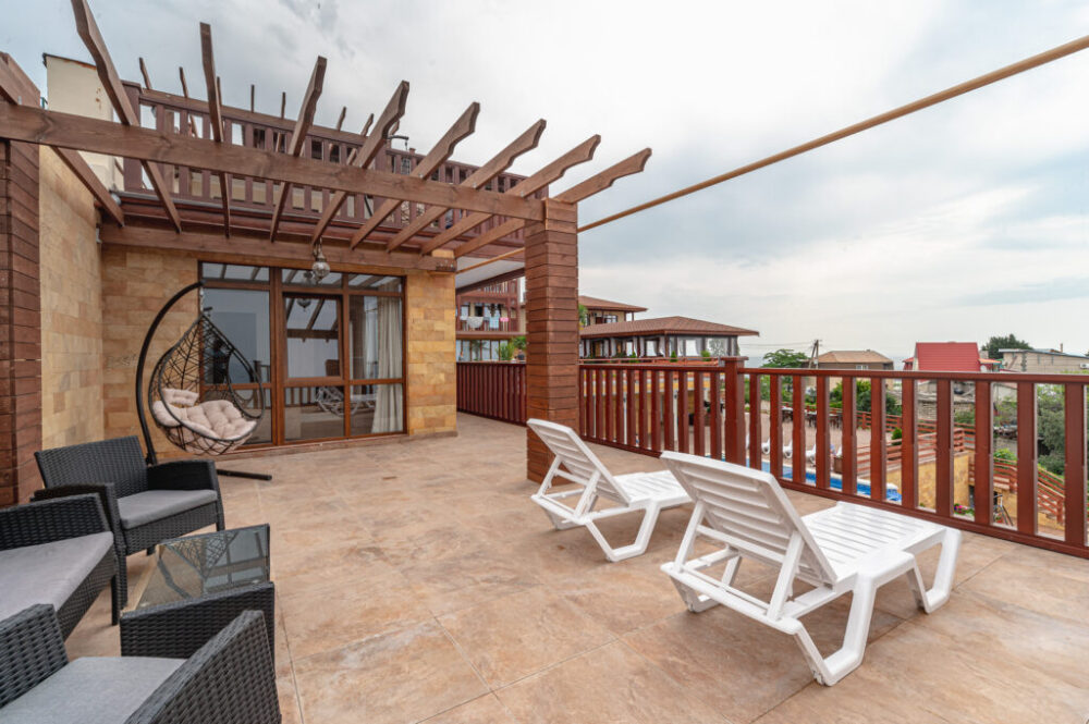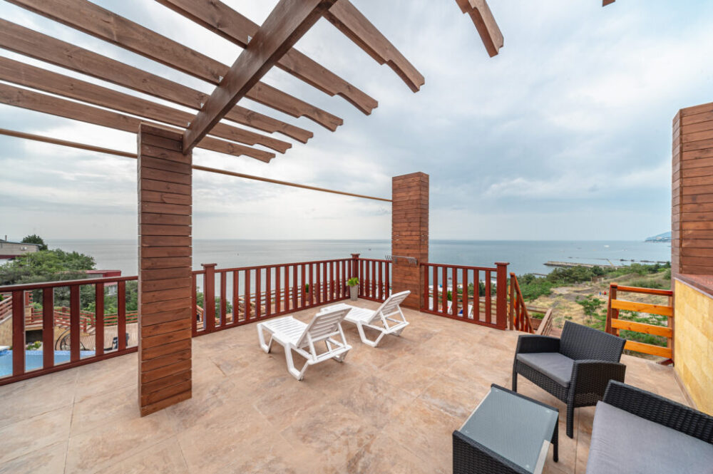 Терраса с невероятным видом на море, площадью более 40 кв.м. и садовой мебелью.