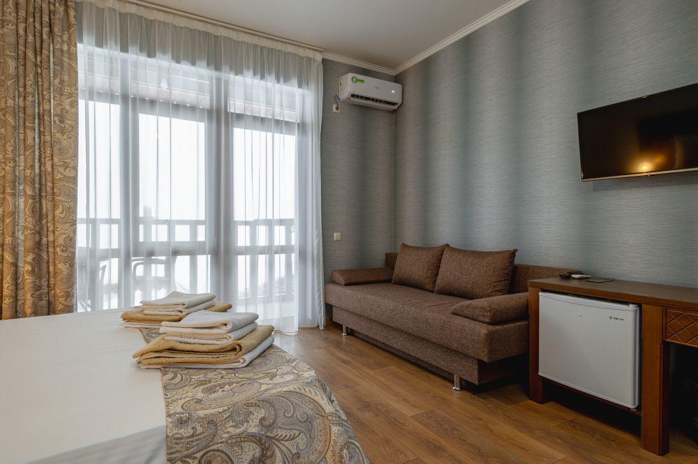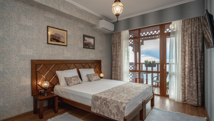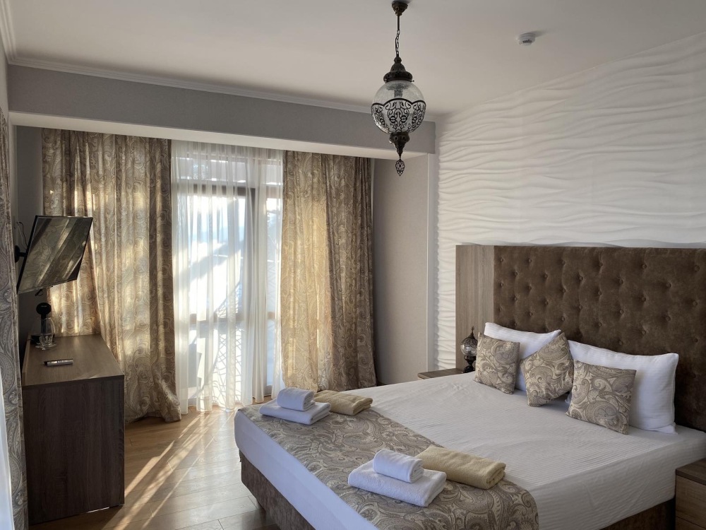 - Дополнительные сервисы: открытый бассейн, балконы с видом на море, бесплатная стоянка для гостей.