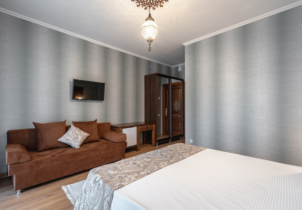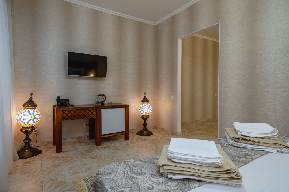 Этно-отель объединяет в себе великолепие древних дворцов с роскошным оформлением, и современные удобства и технологии для вашего комфорта.
